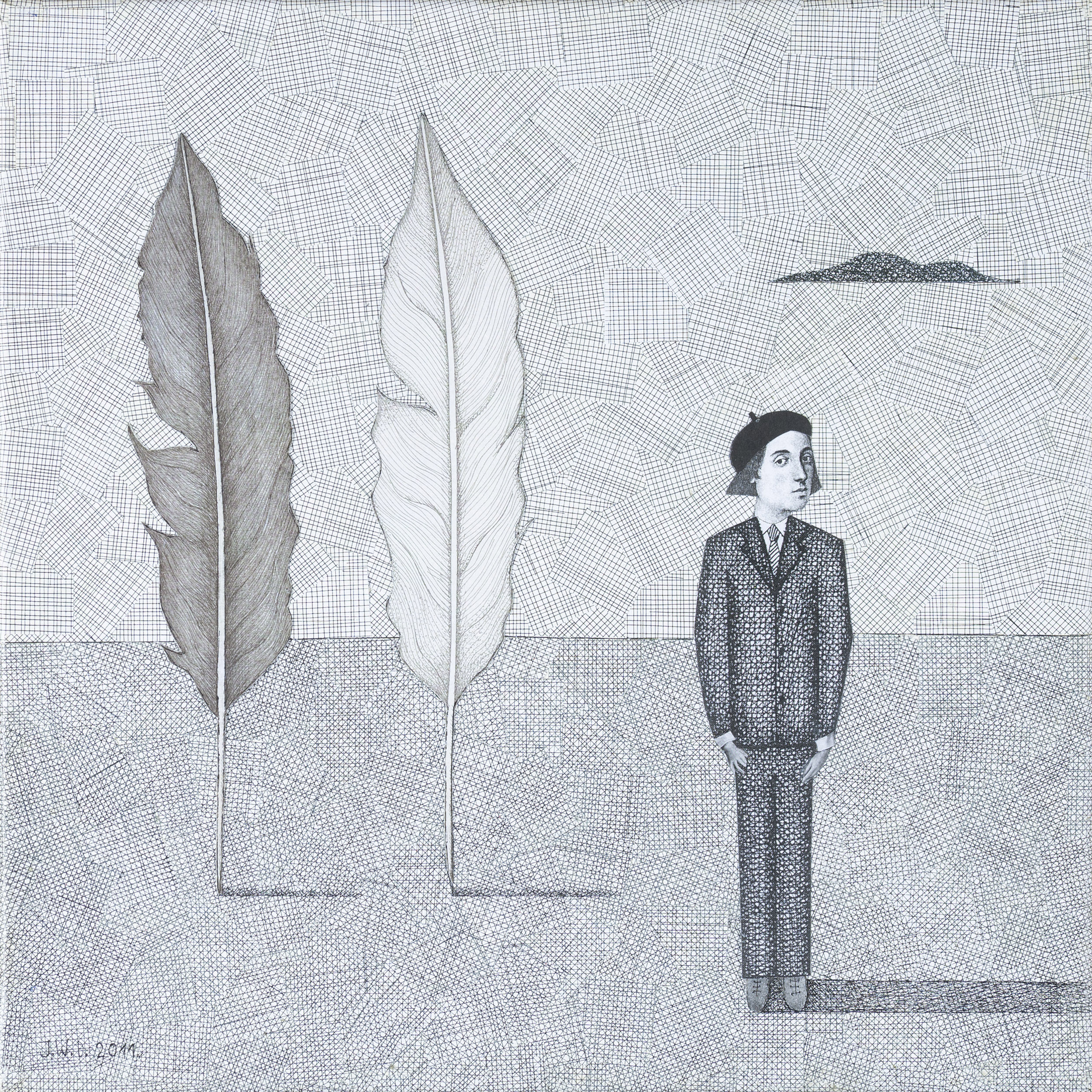 sygn. na odwr. na d. listwie krosna: Anna Sobol-Wejman, na g.: „MALOWANIE” 2011; na płótnie strzałka