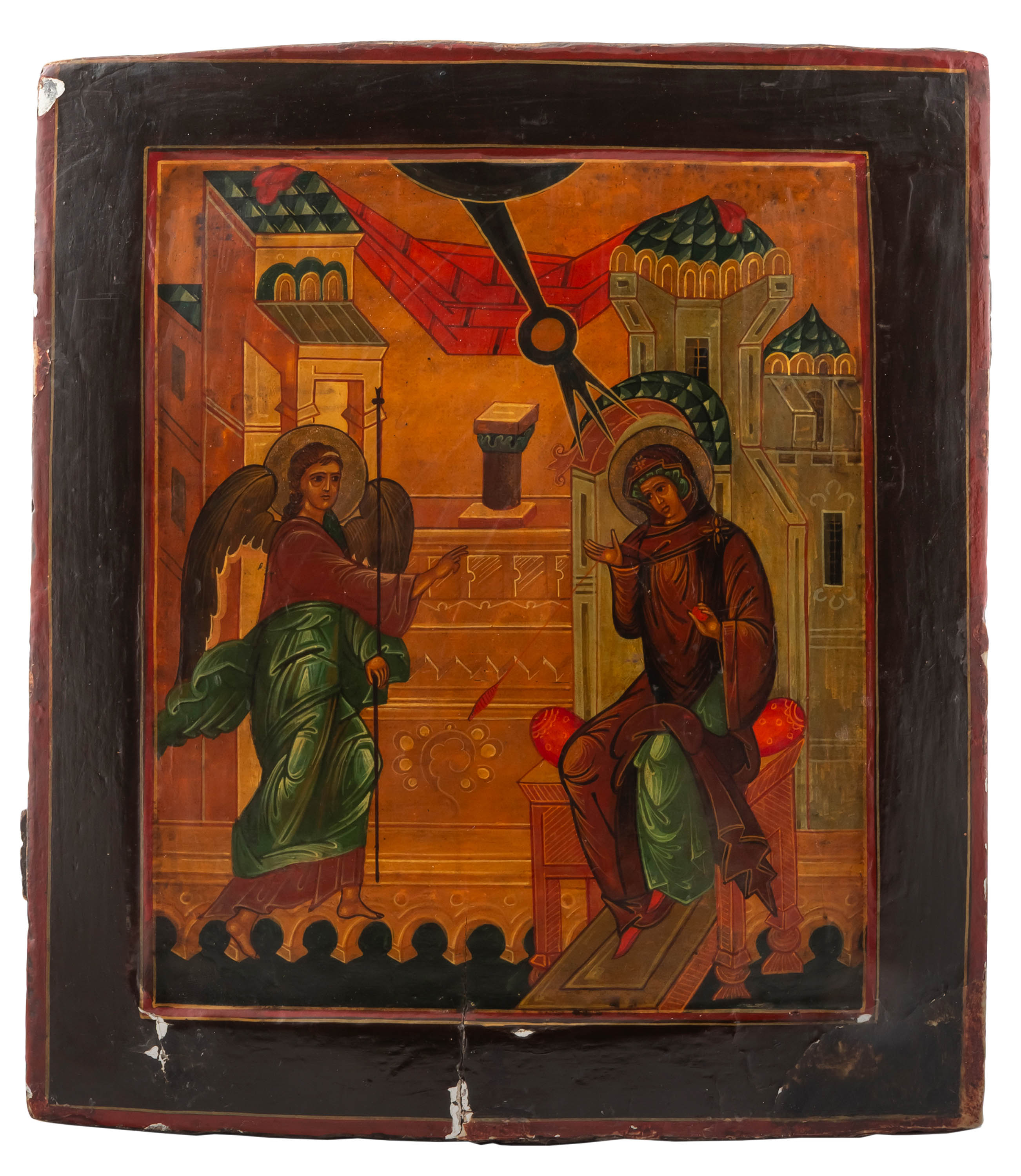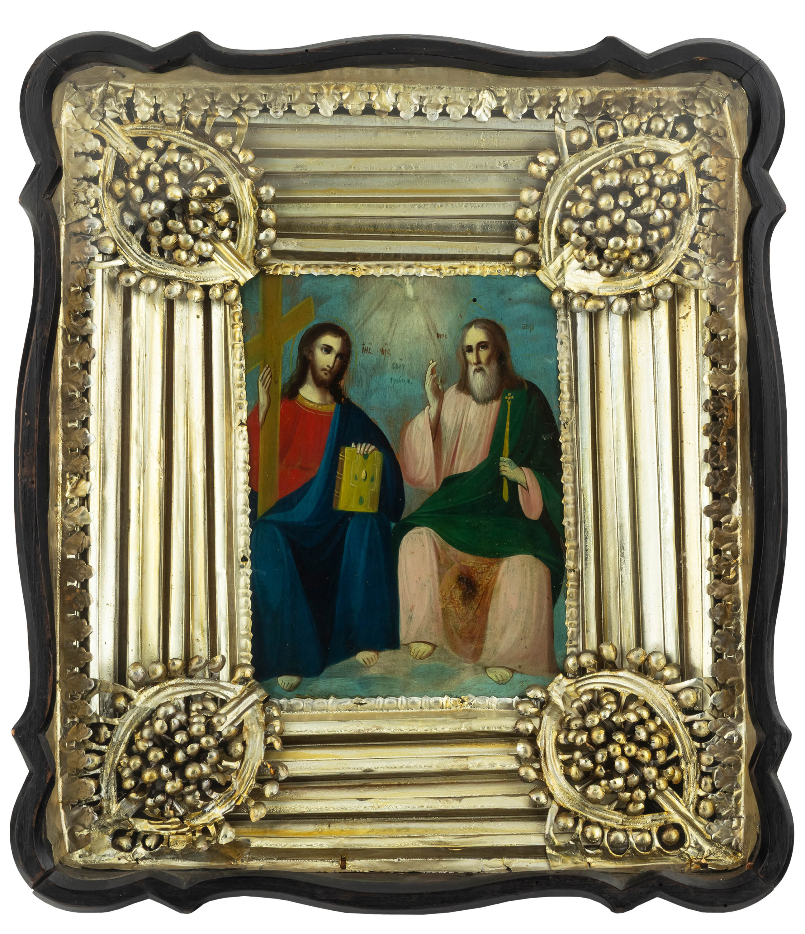 tempera, deska, blacha mosiężna, 22 x 16 cm, kiot: 43,5 x 38 x 10 cm