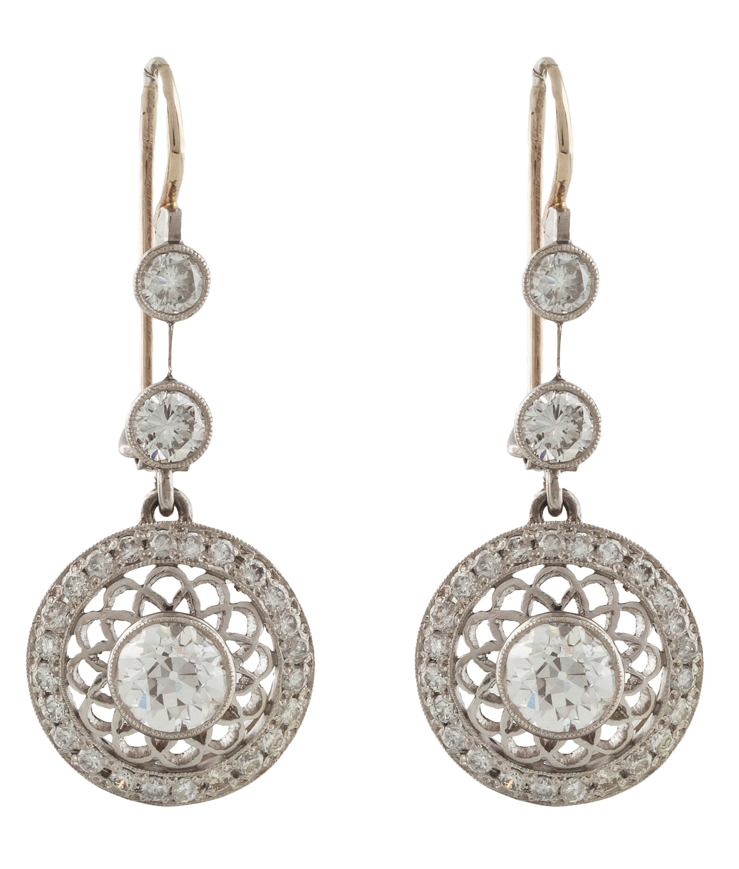 platyna, złoto, pr. 0,750, m. 7,80 g, 2 szt. diamentów w starym szlifie brylantowym łącznie ok. 1,40 ct, F-G/VS-SI, 4 szt. brylantów łącznie ok. 0,52 ct, G-H/SI, 48 szt. brylantów łącznie ok. 0,72 ct, F-G/SI-P3