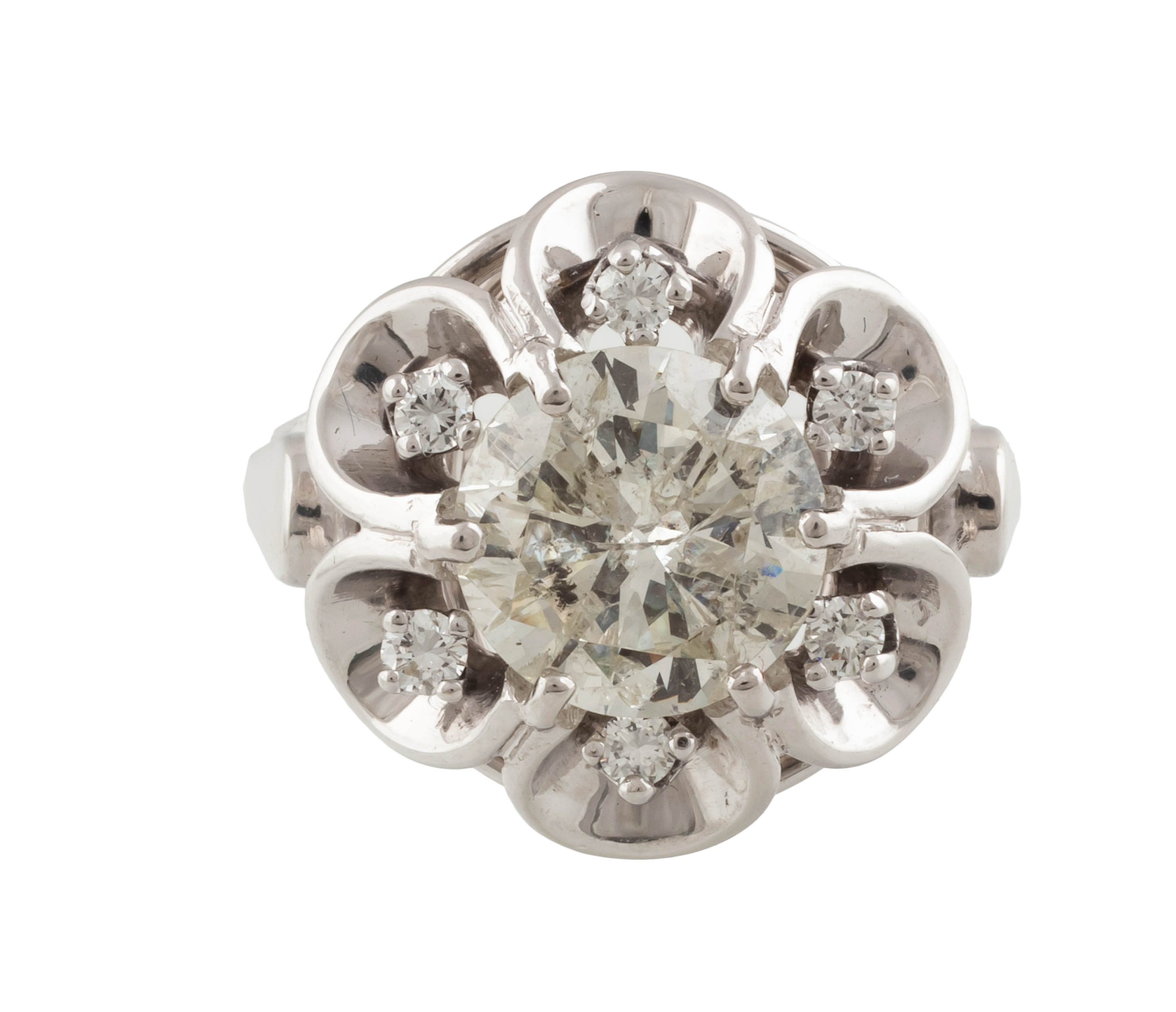 złoto, pr. 0,750, m. 8,01 g, brylant ok. 2,52 ct, I-J/SI2, 6 szt. brylantów łącznie ok. 0,15 ct, G-H/VS-SI