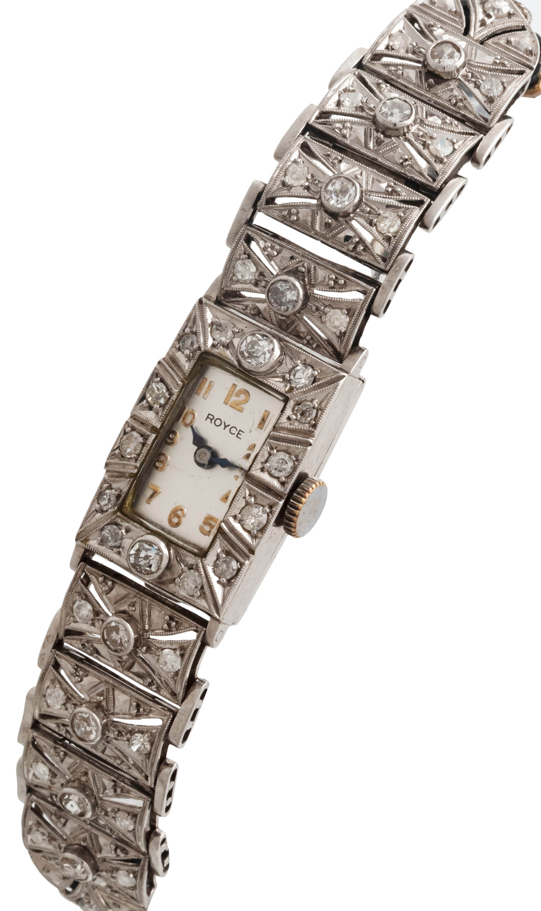 platyna, pr. ok. 0,950, masa całkowita: 21,67 g, 40 szt. diamentów w szlifie uproszczonym 8/8 łącznie ok. 1,30 ct, H-M/P