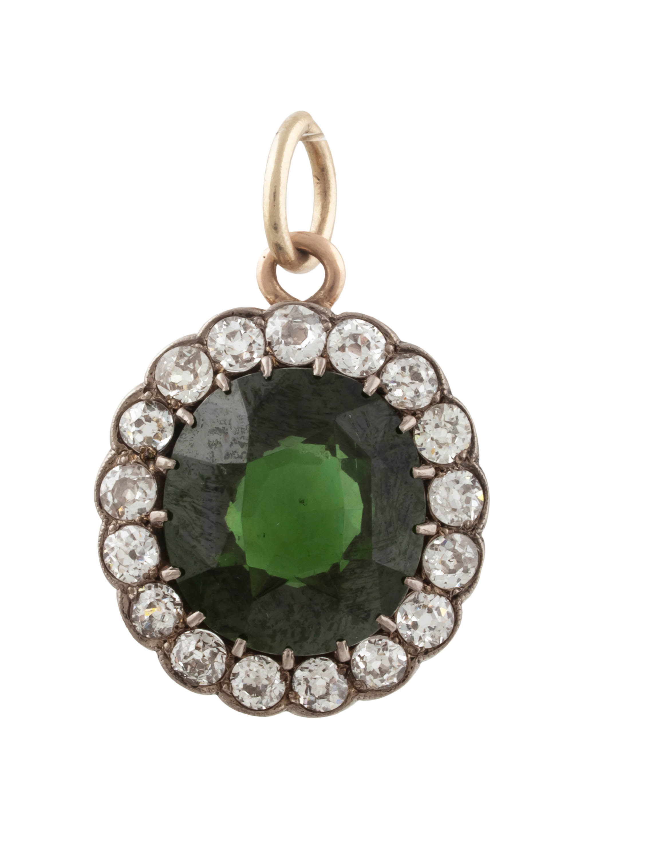 zawieszka złoto, pr. ok. 0,585, koluszko pr. ok. 0,417, 17 szt. diamentów w starym szlifie łącznie ok. 1.70 ct, G-H/VS-SI, cyrkon ok. 11 ct