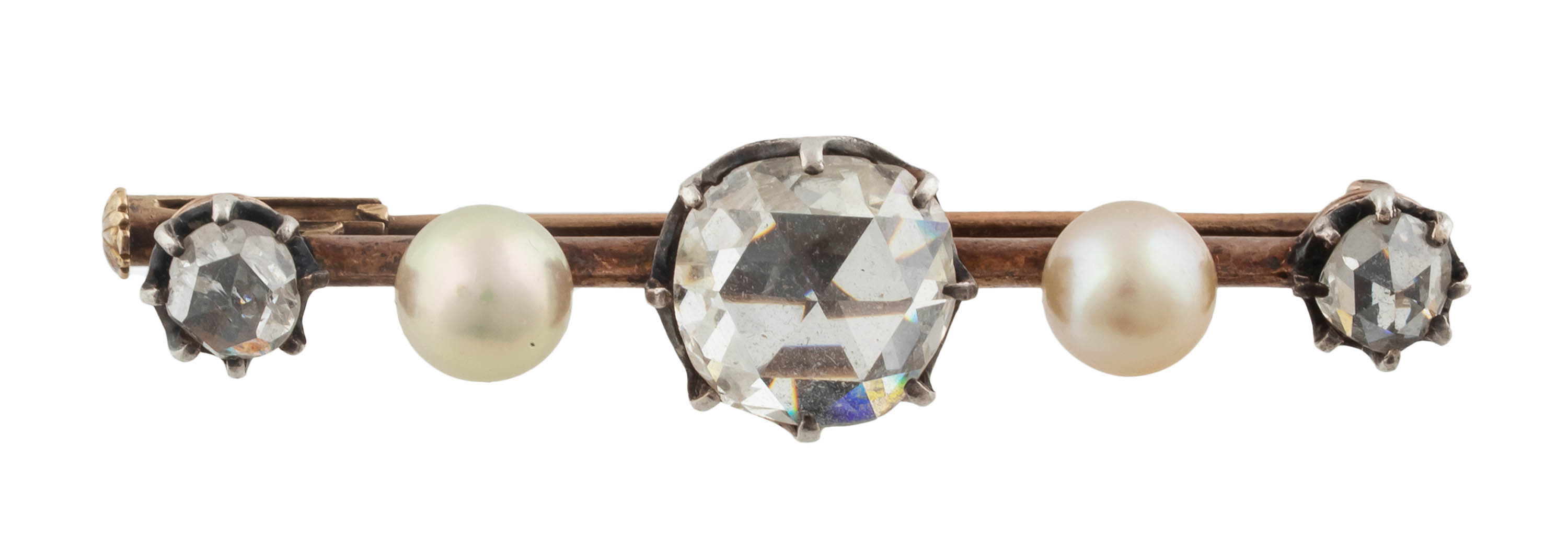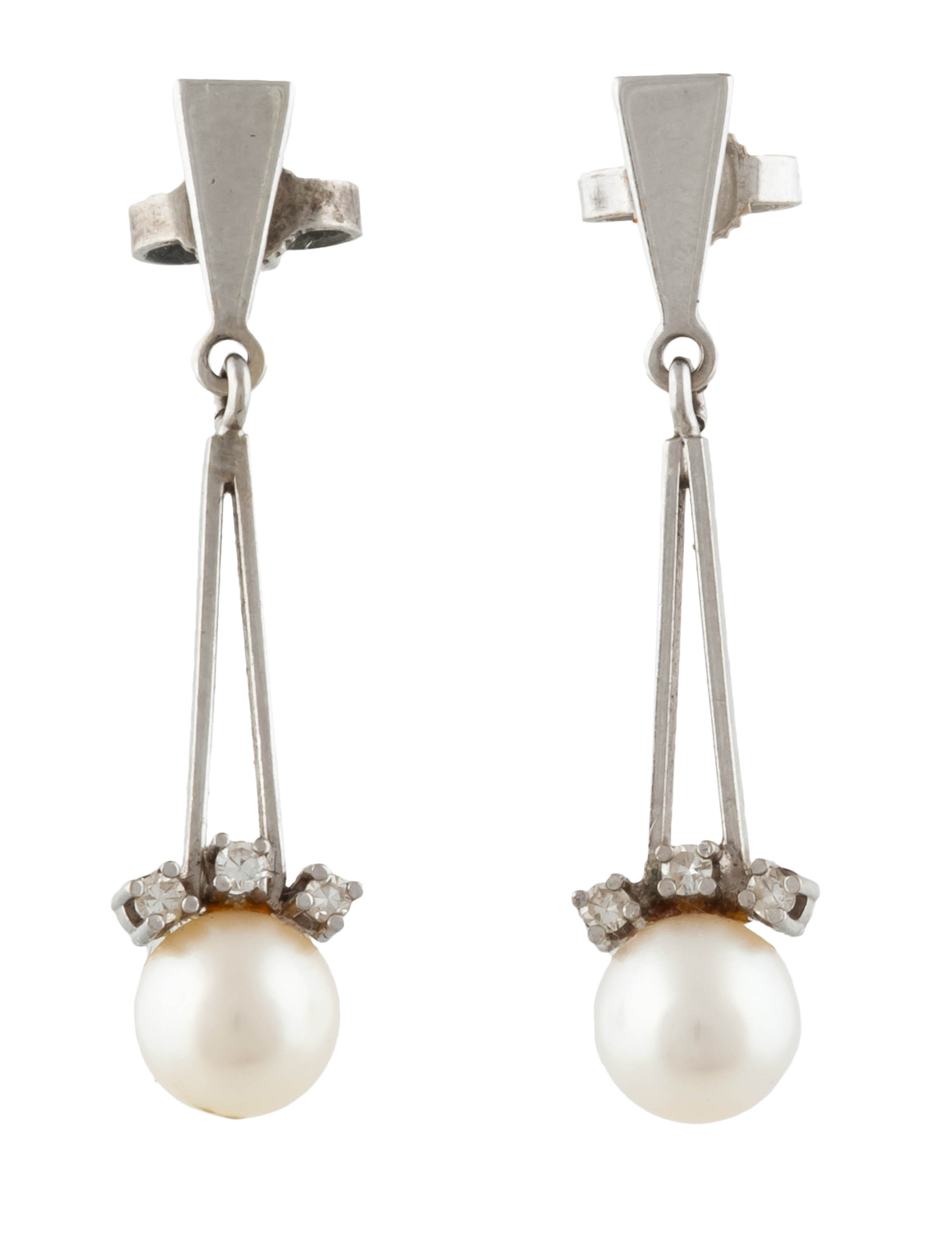 złoto, pr. ok. 0,585, srebro, m. 4,62 g, 2 szt. pereł słonowodonych hodowanych akoya śr. 5,40 mm, 3 szt. rozet: centralnie ok. 0,70 ct, H-I/VS, 2 szt. łącznie ok. 0,30 ct, G-H/VS-P2