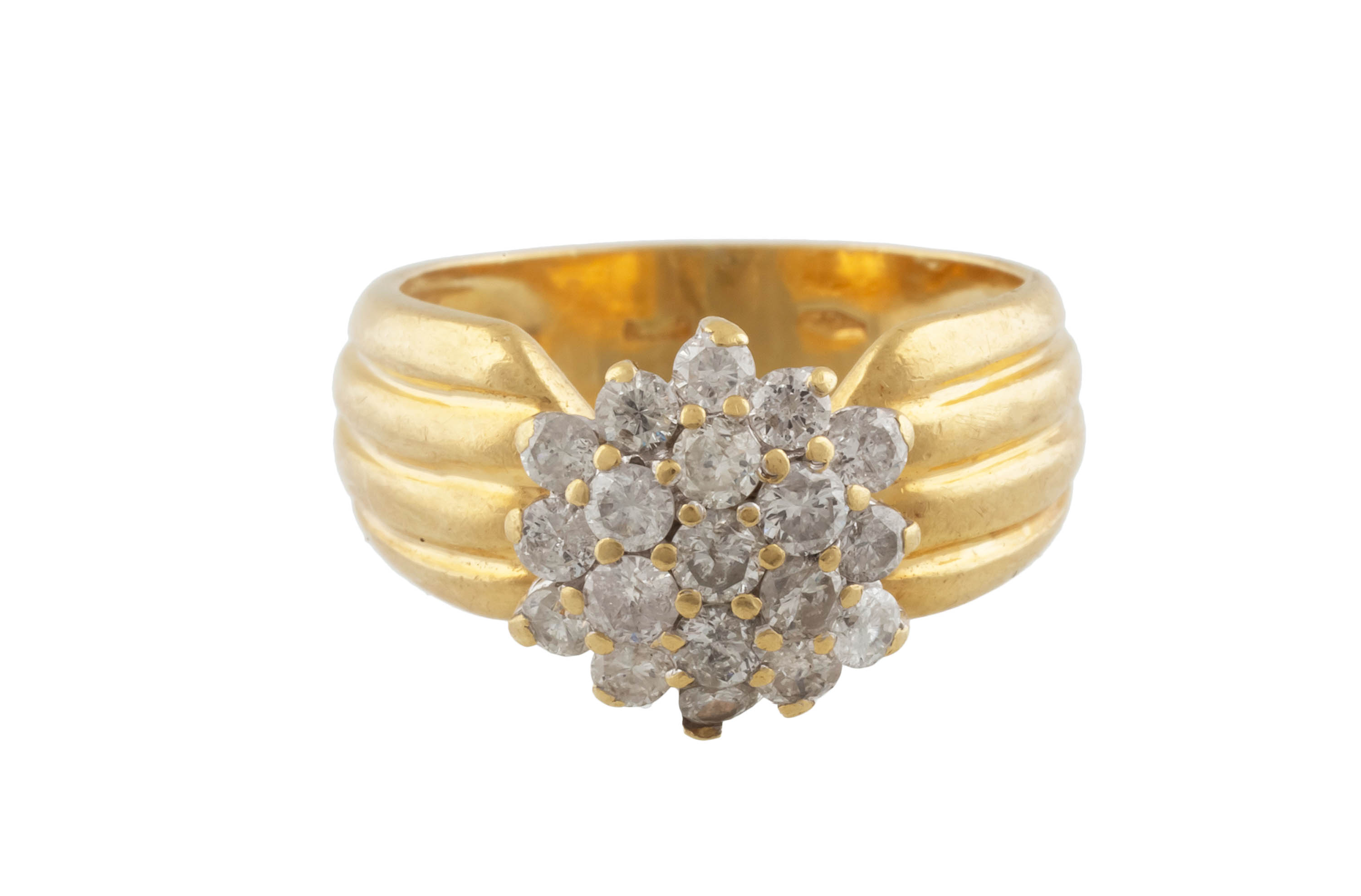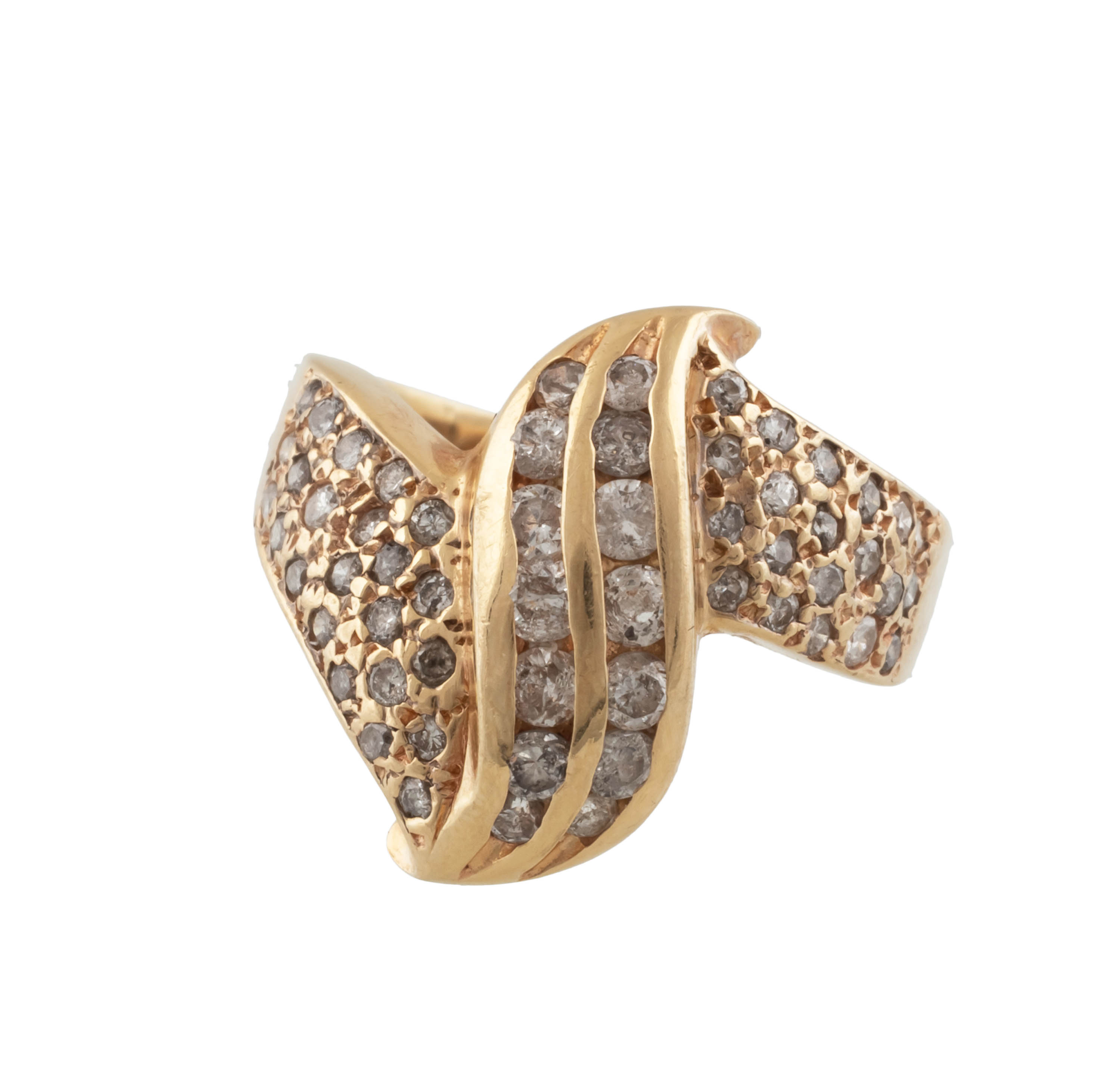 złoto, pr. ok. 0,585, m. 10,60 g, 50 szt. brylantów łącznie ok. 0,75 ct, H-J/SI-P