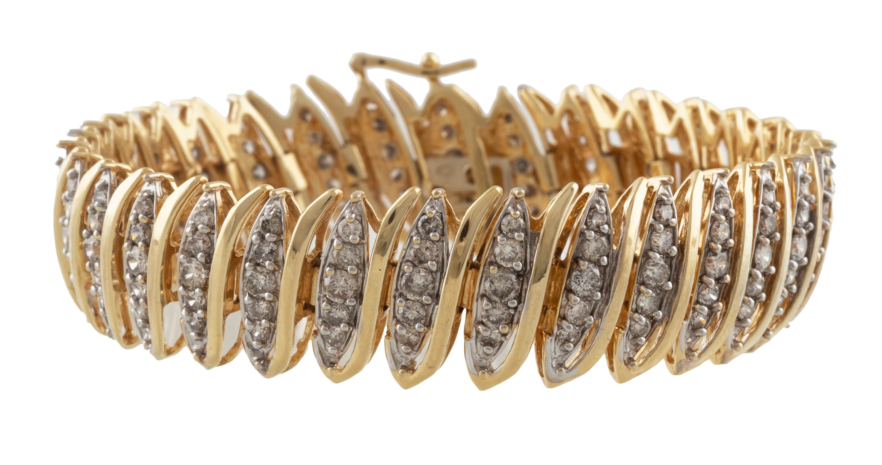 złoto, pr. ok. 0,585, m. 34,24 g, 160 szt. brylantów łącznie ok. 4,80 ct, TC/P