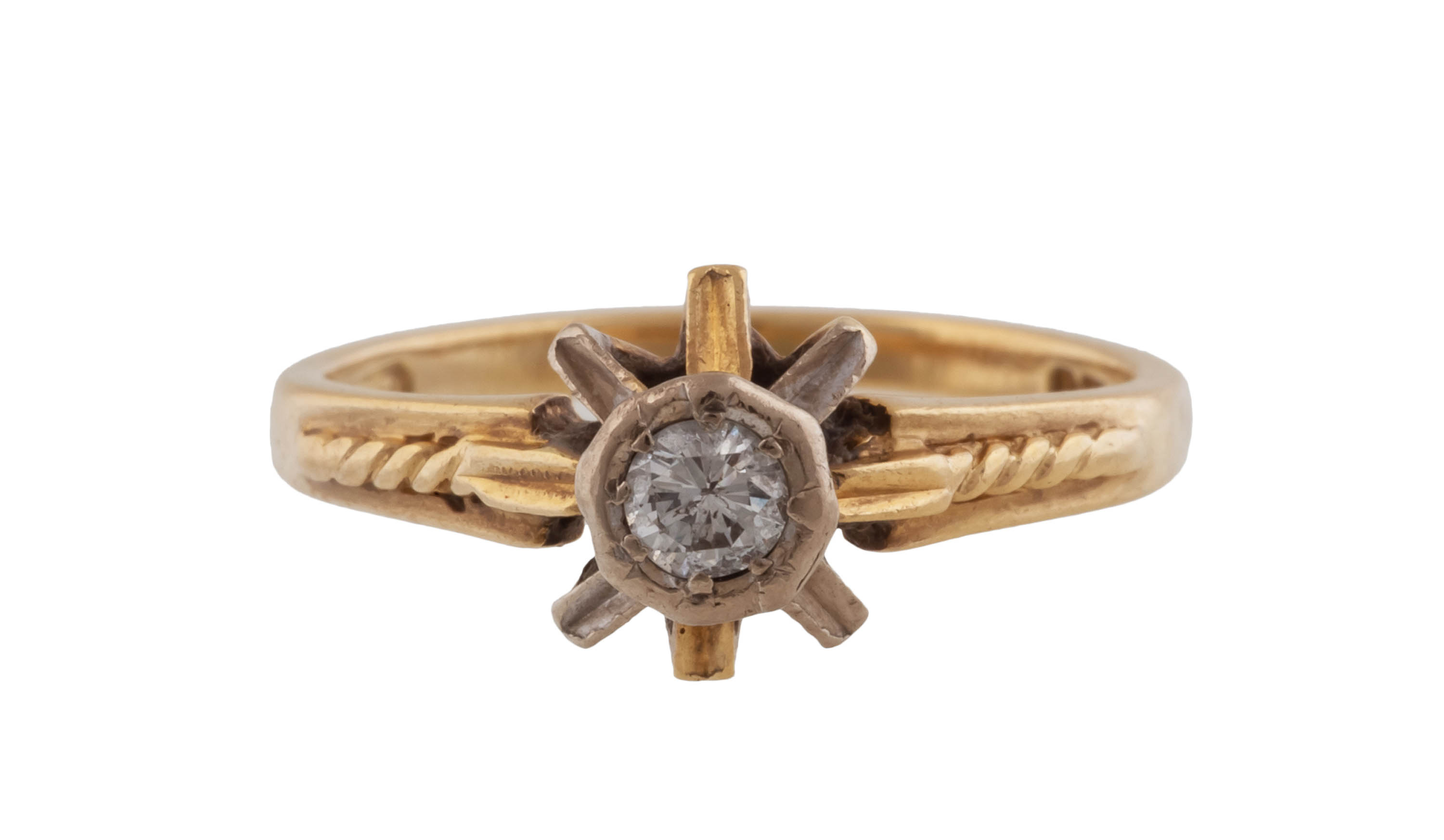 złoto, pr. 0,585, m. 4,81 g, diament w szlifie 8/8 łącznie ok. 0,01 ct