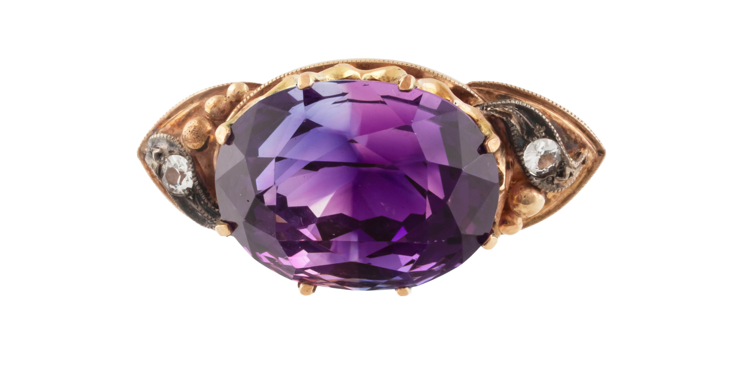 złoto, pr. 0,500, m. 7,05 g, ametyst ok. 16,5 ct, 2 szt. leukoszafirów