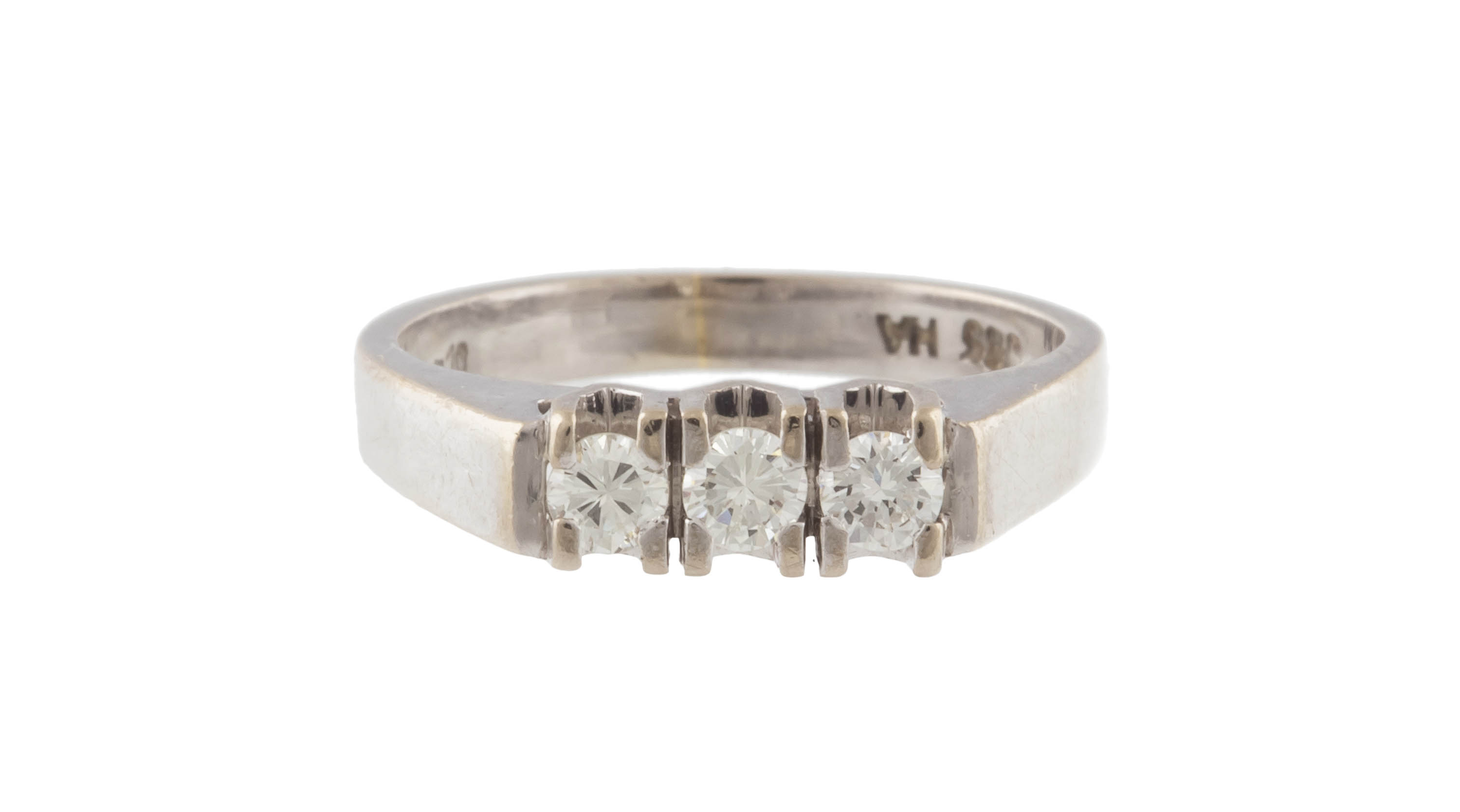 złoto, pr. 0,585, m. 3,76 g, 3 szt. brylantów łącznie ok. 0,30 ct, H-I/VS-SI