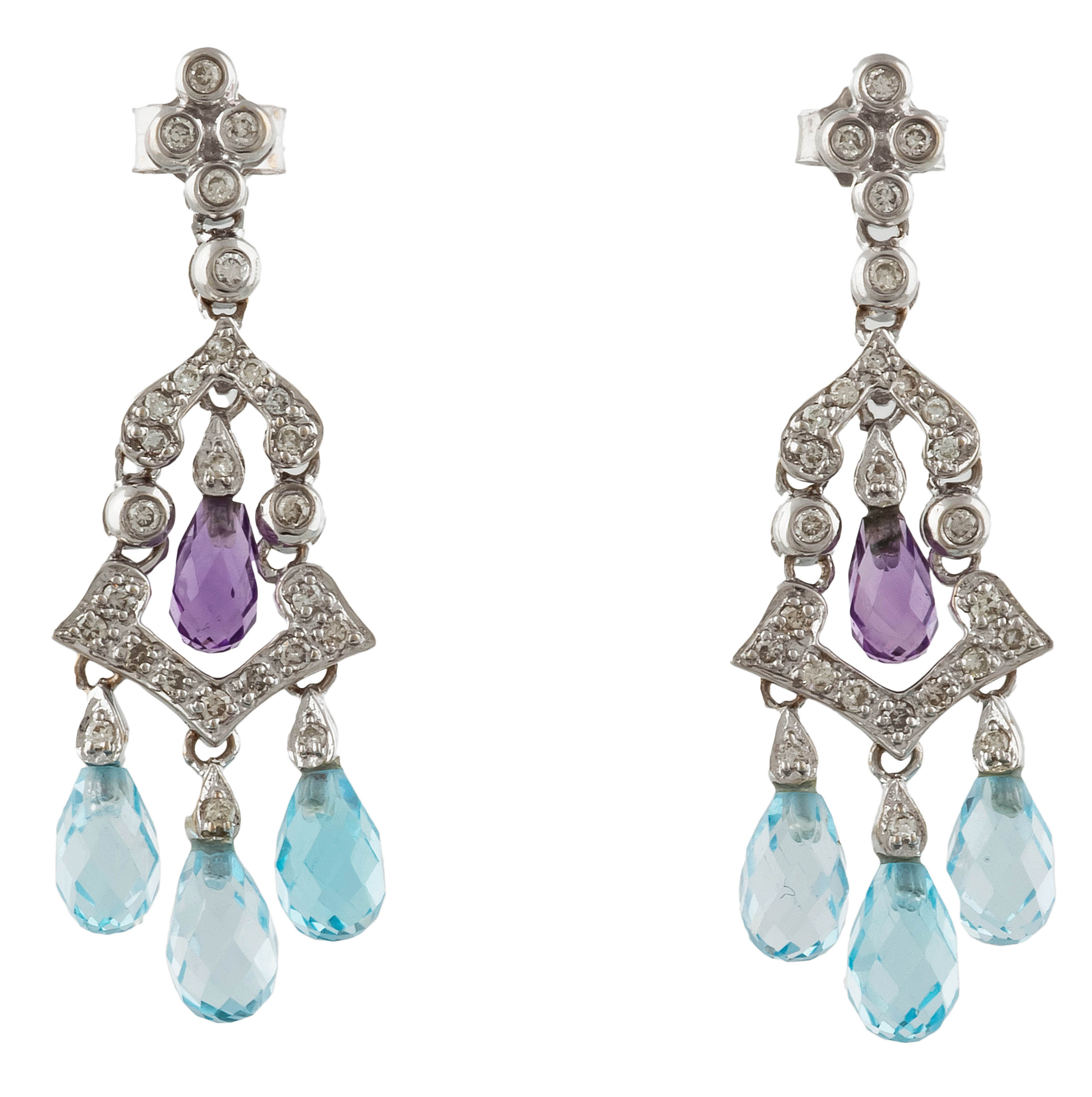 złoto, pr. ok. 0,750, m. 5,48 g, 2 szt. ametystów, 6 szt. akwamarynów, 52 szt. brylantów łącznie ok. 0,26 ct, H-K/SI