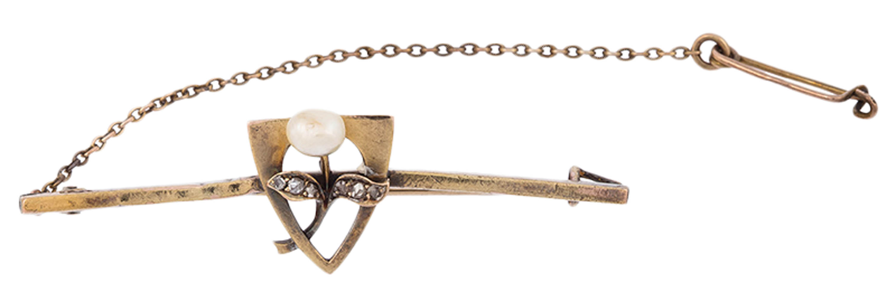 złoto, pr. ok. 0,585, m. 4,6 g, 4 szt. brylantów łacznie ok. 0,04 ct, G-H/VS, 4 szt. pereł hodowanych