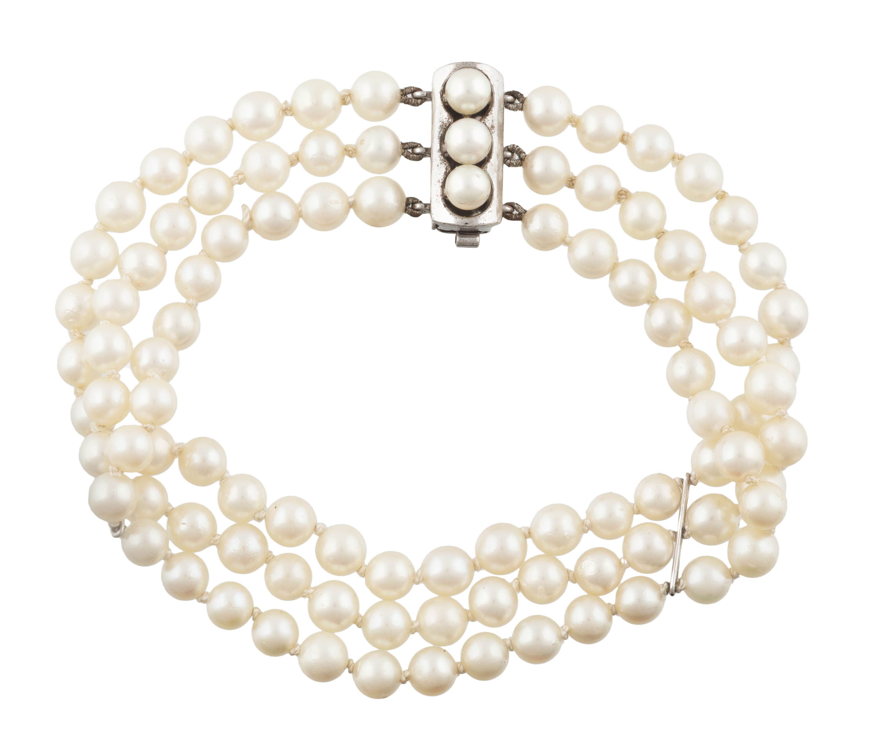 zapięcie srebro, pr. ok. 0,925, m. 22,56 g, 93 szt. pereł hodowanych słonowodnych śr. ok. 5,2 - 5,4 mm