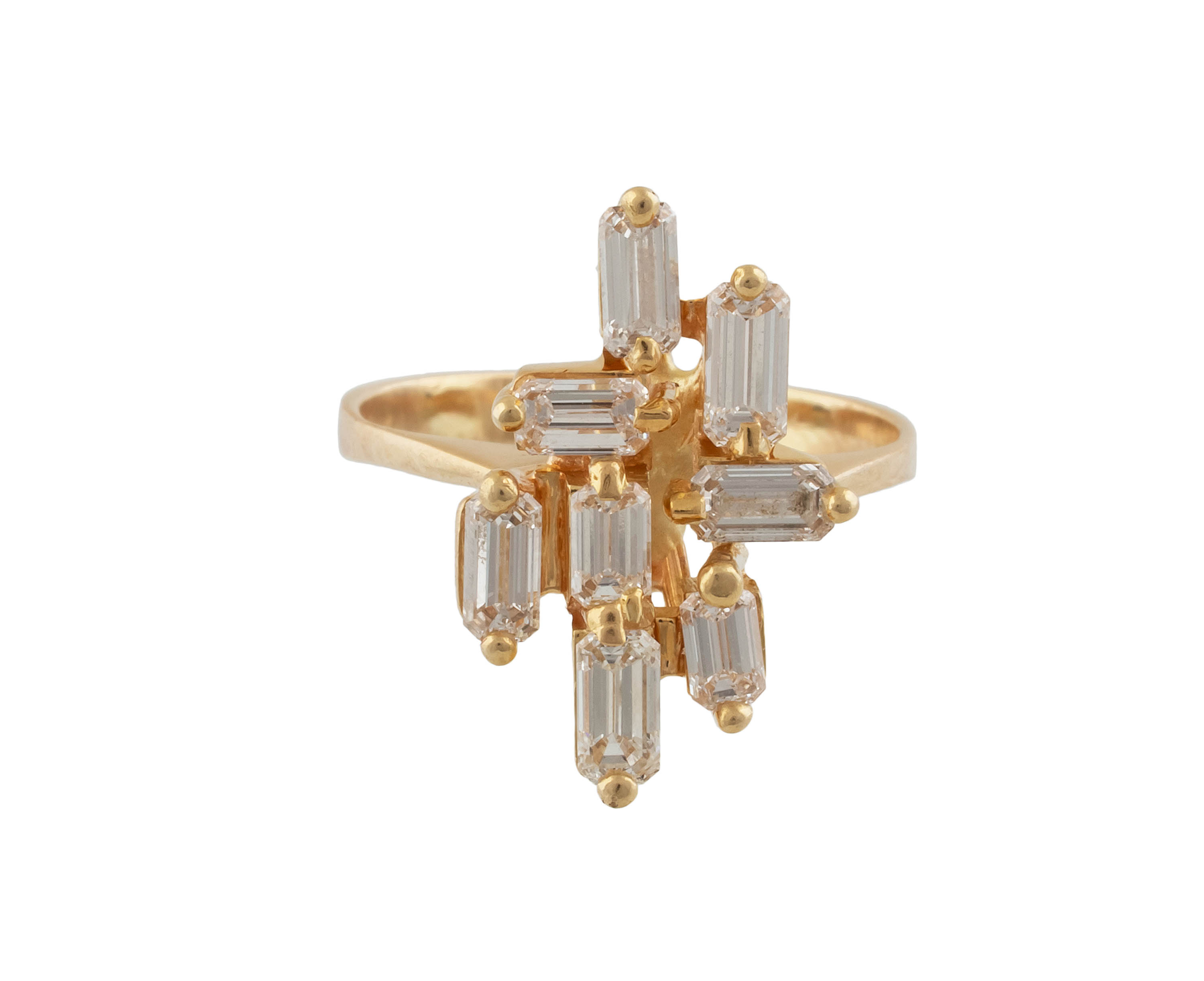 złoto, pr. ok. 0585, m. 4,50 g, 8 szt. diamentów w szlifie szmaragdowym łącznie ok. 1,45 ct, F-G/VS