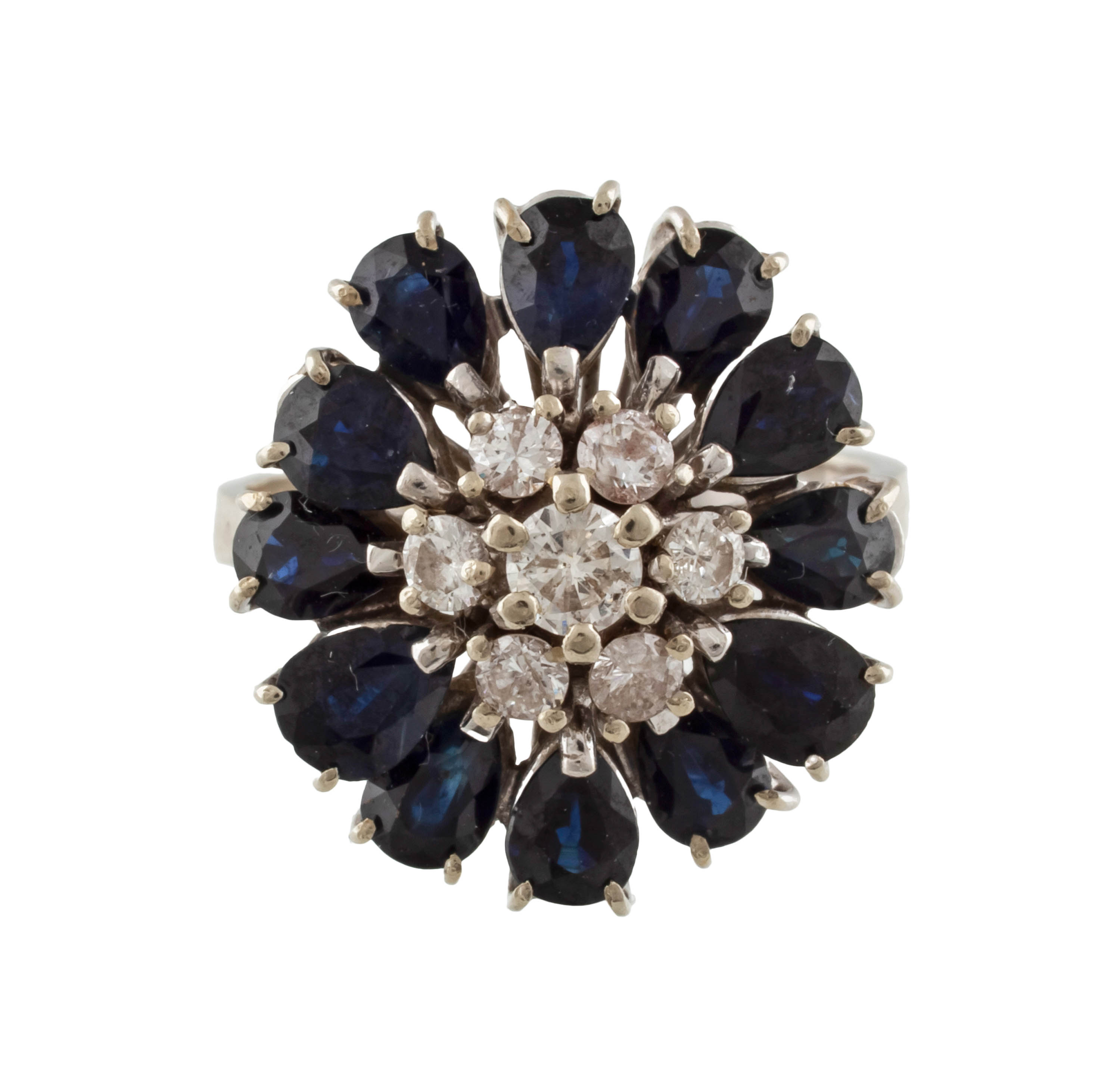 złoto, pr. 0,750, m. 6,80 g, 7 szt. brylantów łącznie ok. 0,54 ct, H-I/SI2-P3, 12 szt. szafirów łącznie ok. 4,20 ct