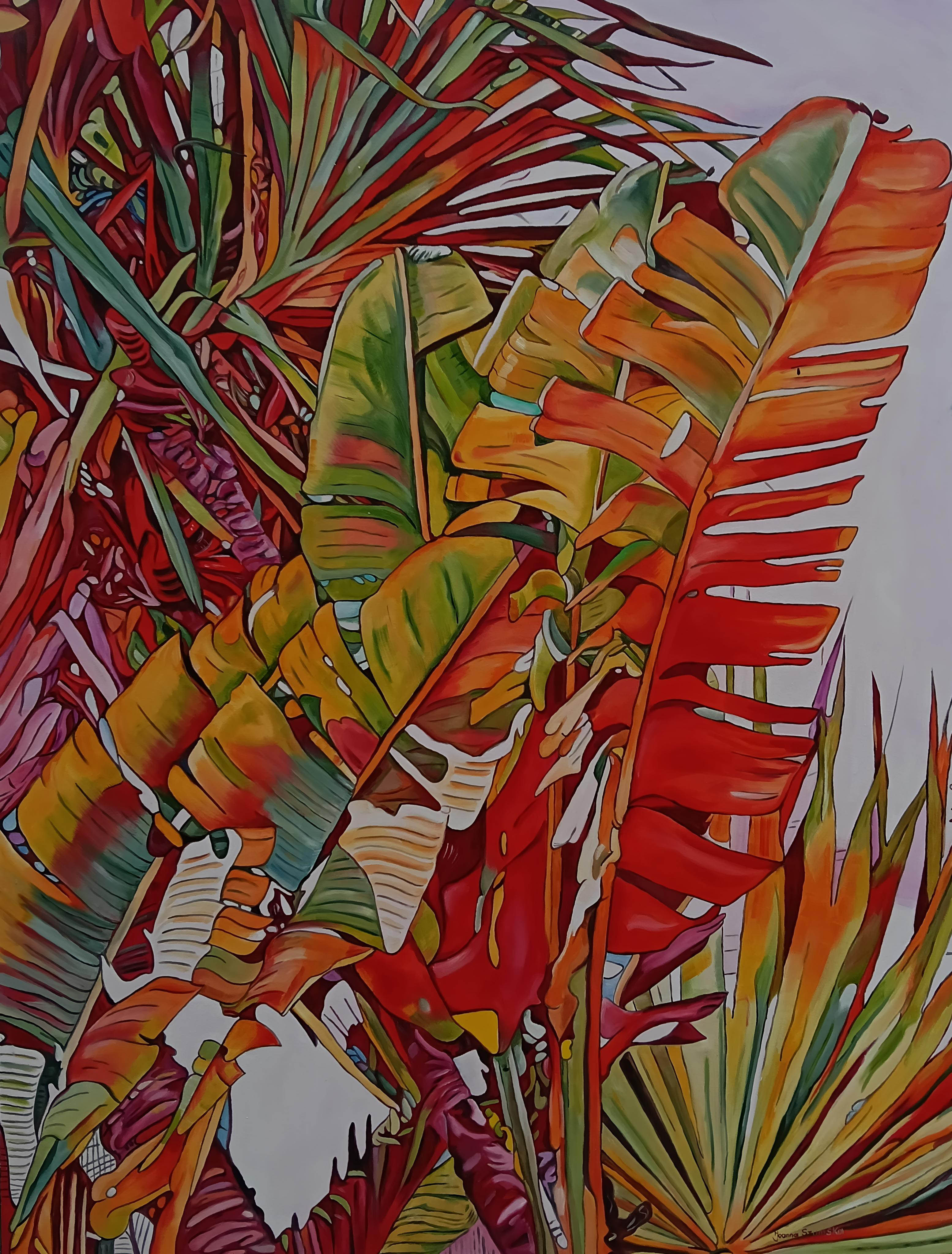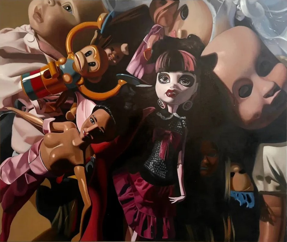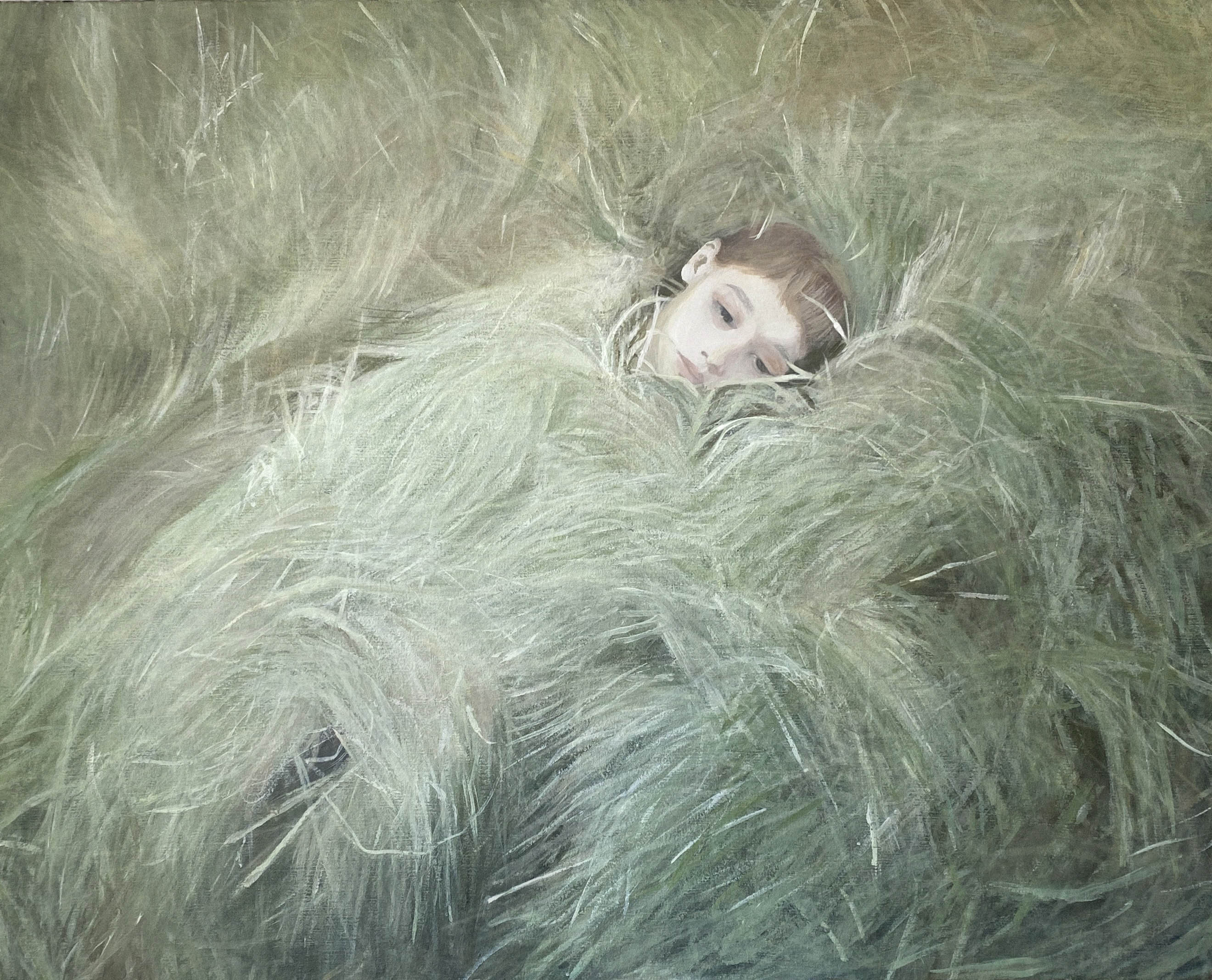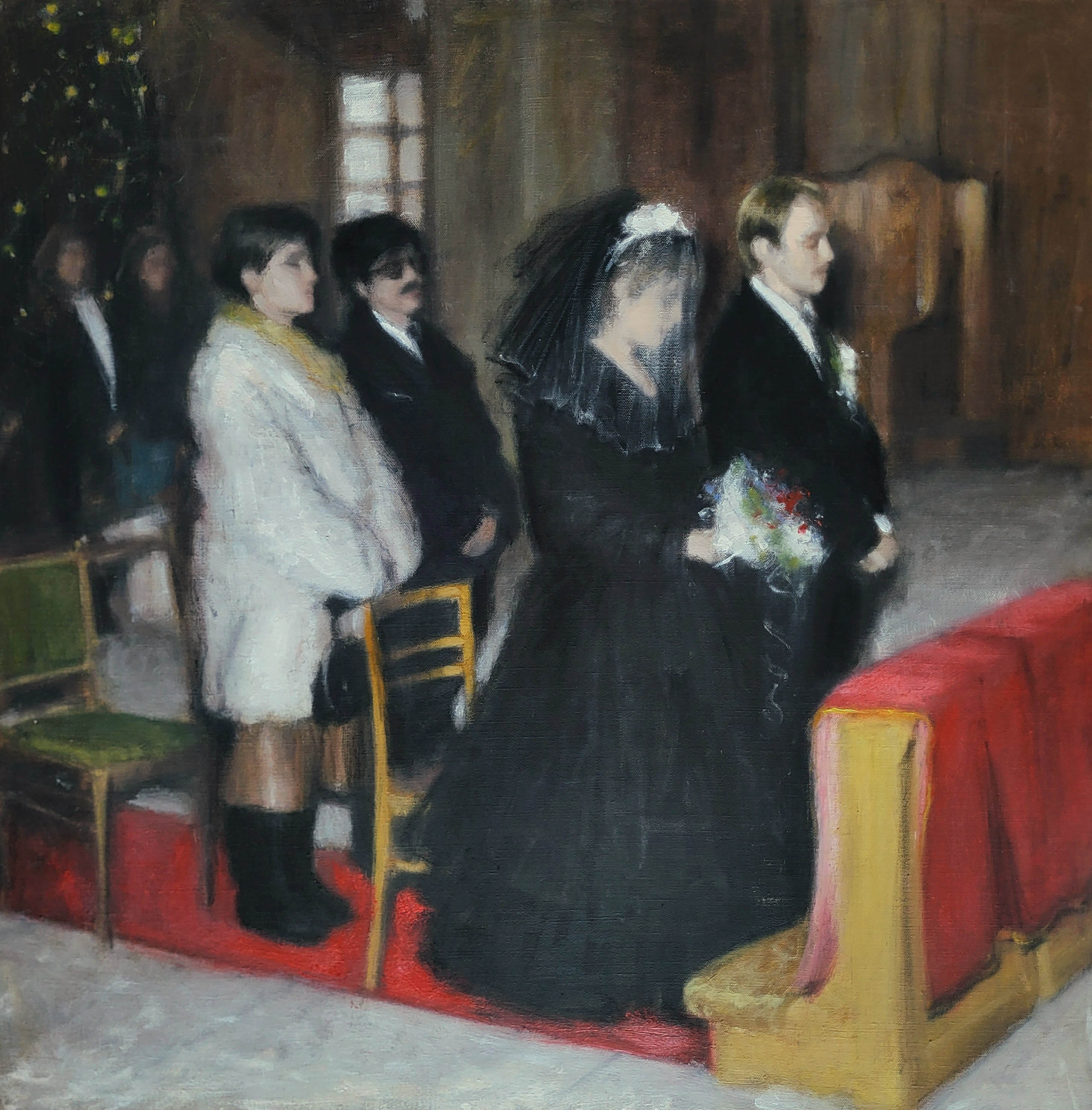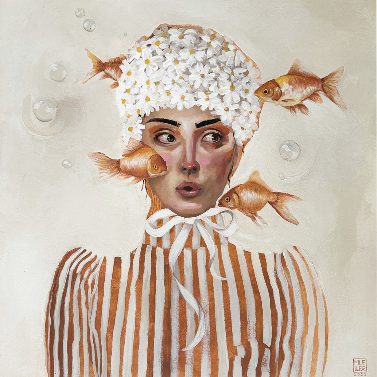Technika własna, akryl, bawełna, szlagmetal, płótno, 120x120 cm.