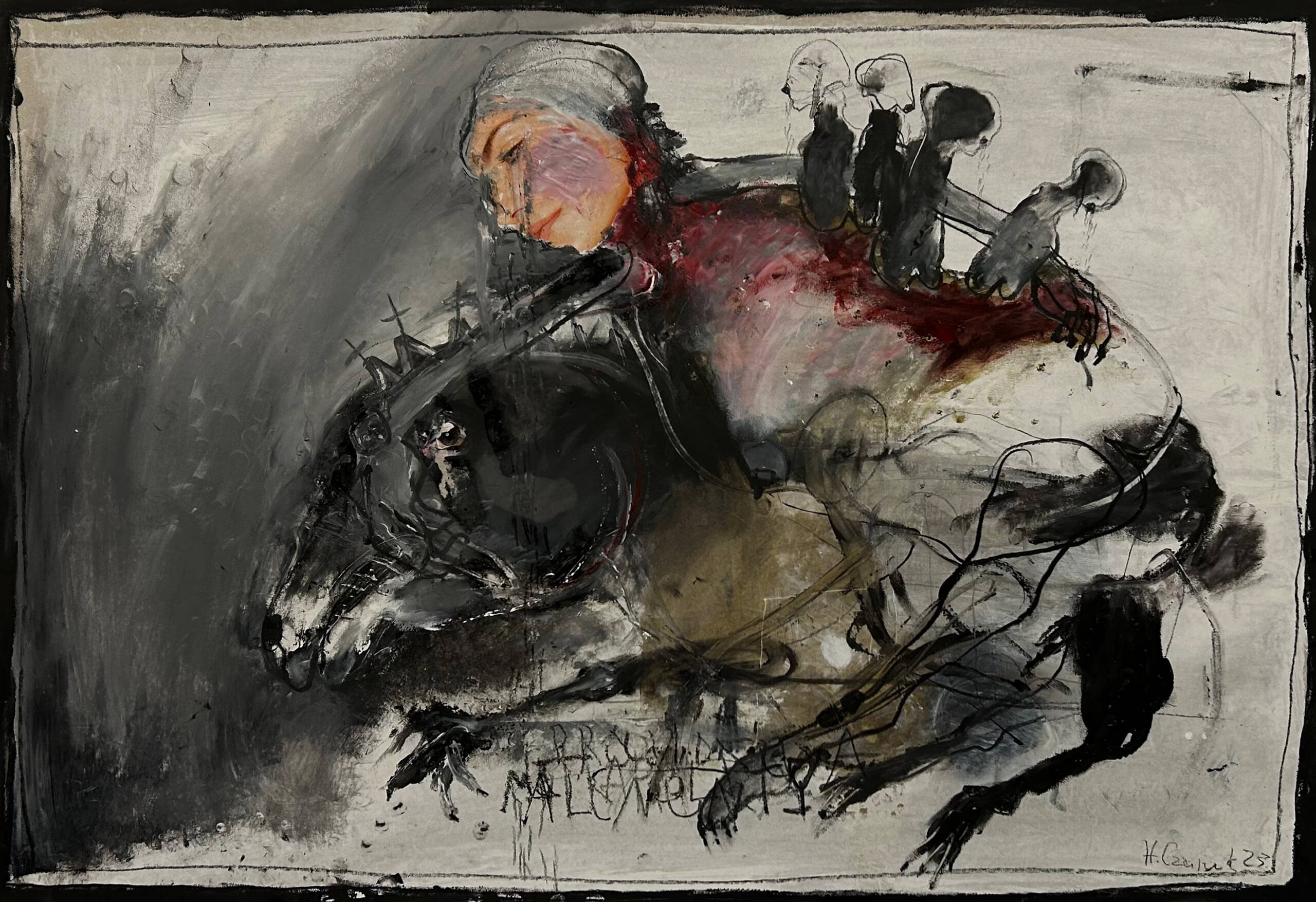 Sygnowany, dodatkowo opieczętowany pieczęcią Jerzego Kossaka z herbem rodu Kossaków.