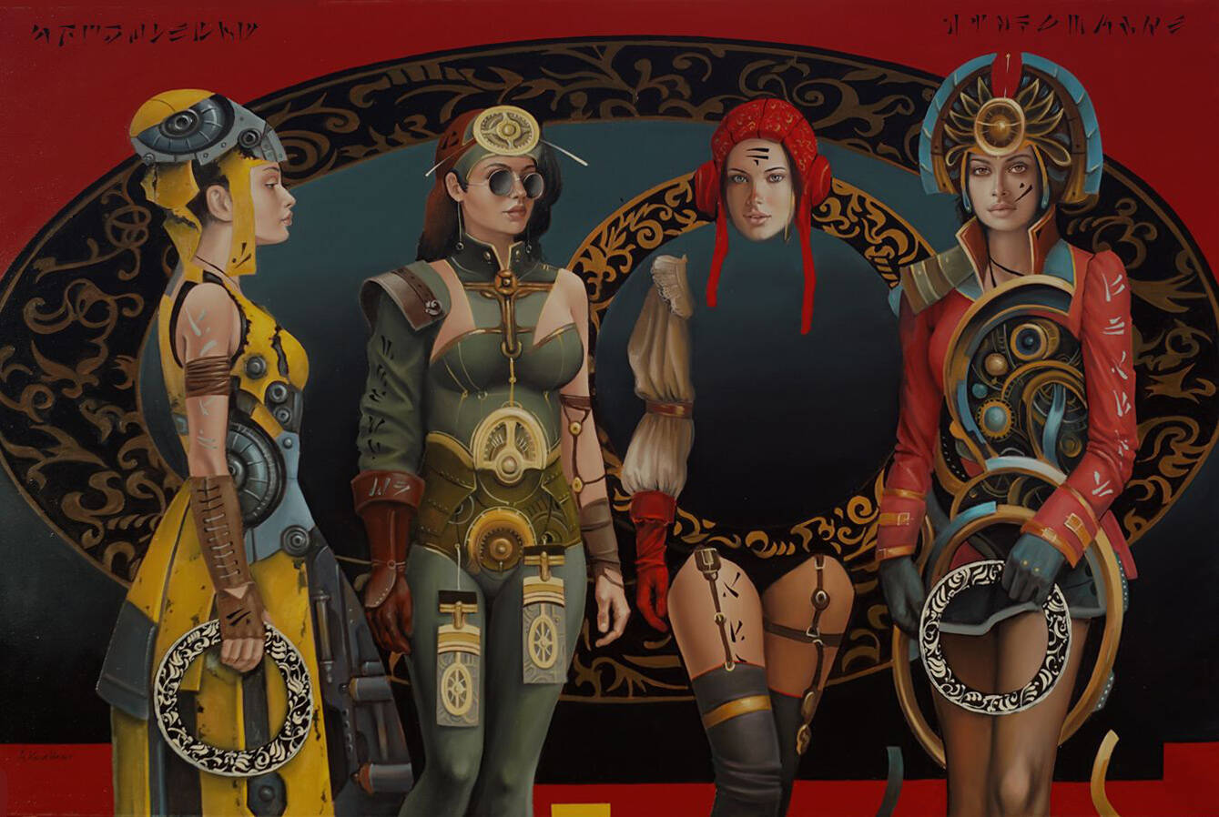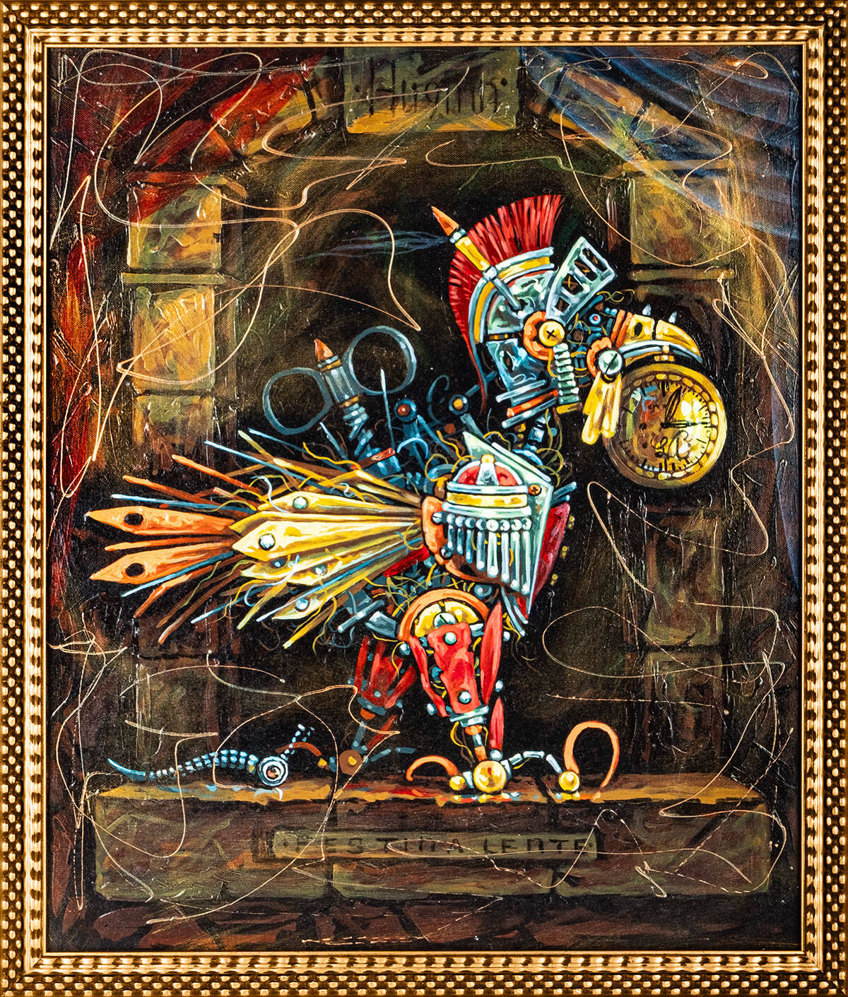 technika własna, szlagmetal, akryl, olej, płótno, 80 x 100 cm