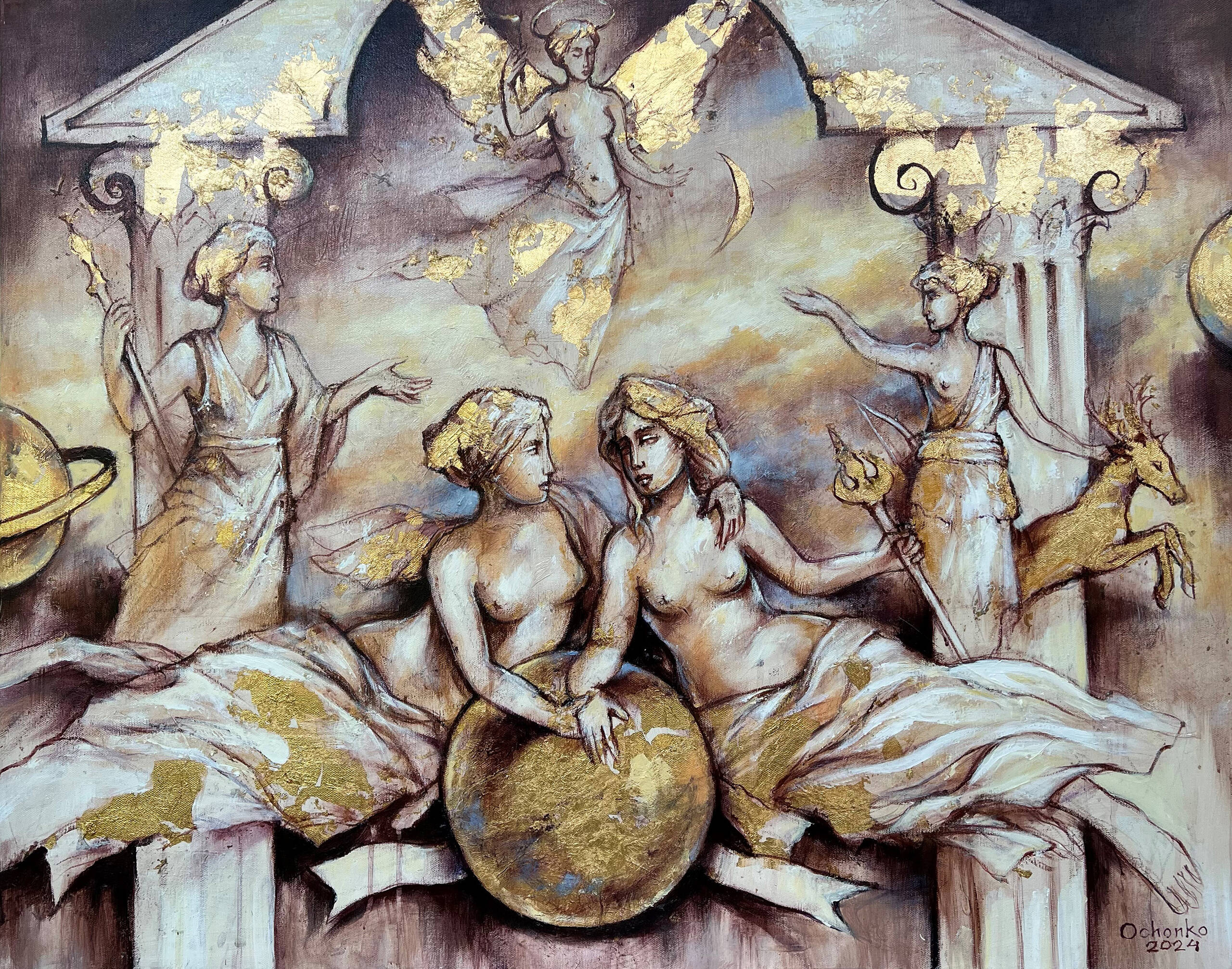 olej, akryl, szlagmetal, płótno, 120 x 120 cm