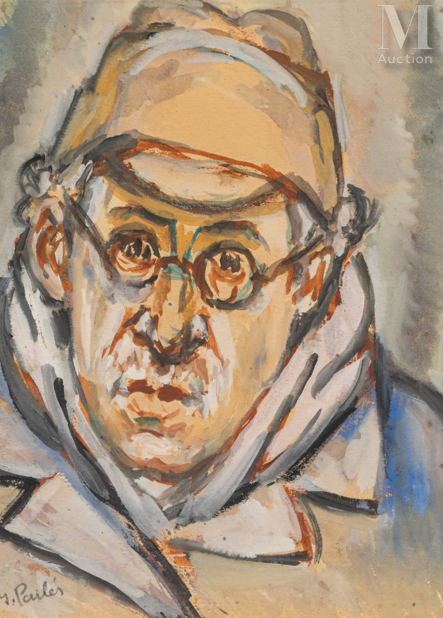 Na odwrociu odręczny napis: „Autoportret malarza Isaaca Pailèsa, ukrytego na strychu w Owernii, zimą 1943–44”.