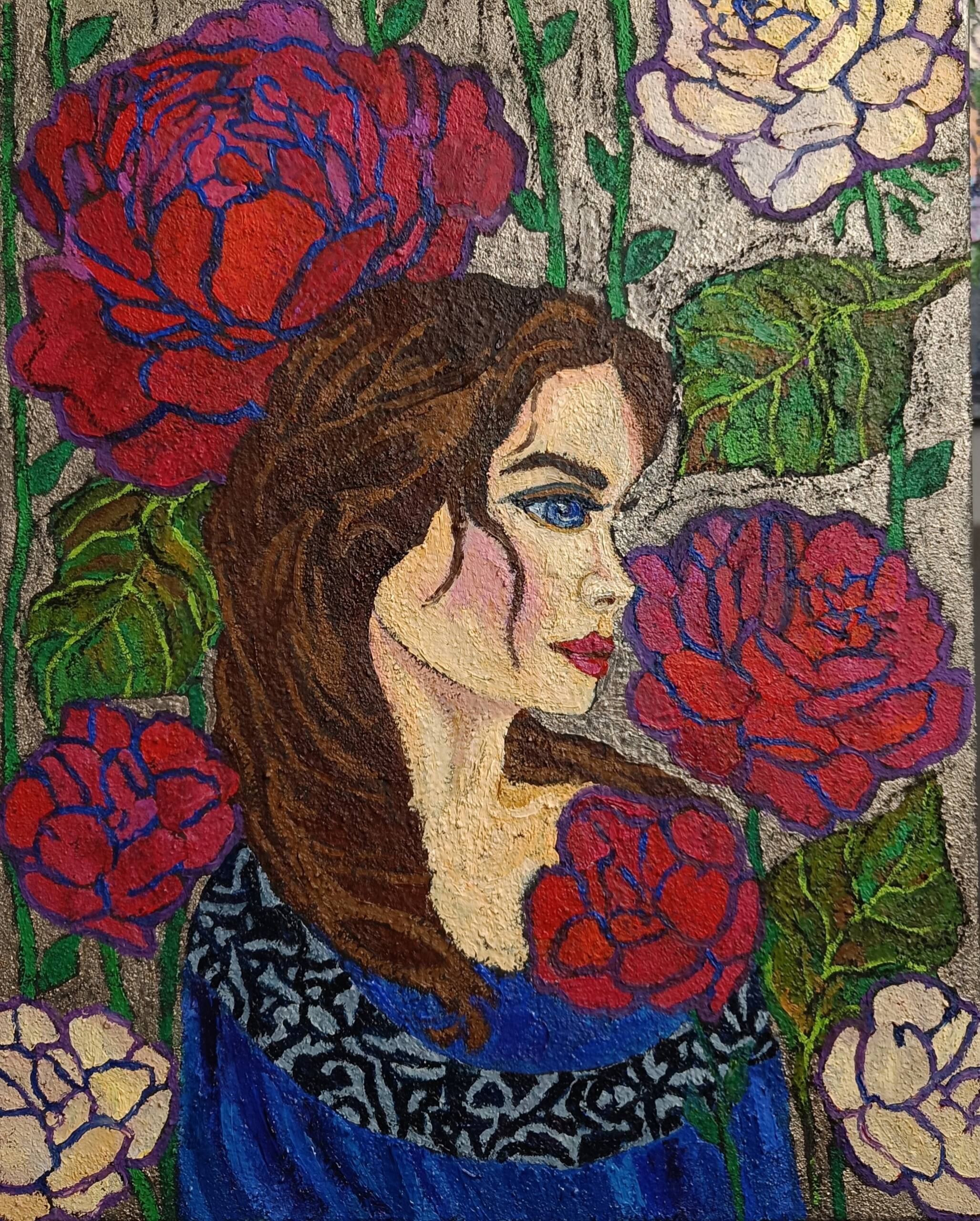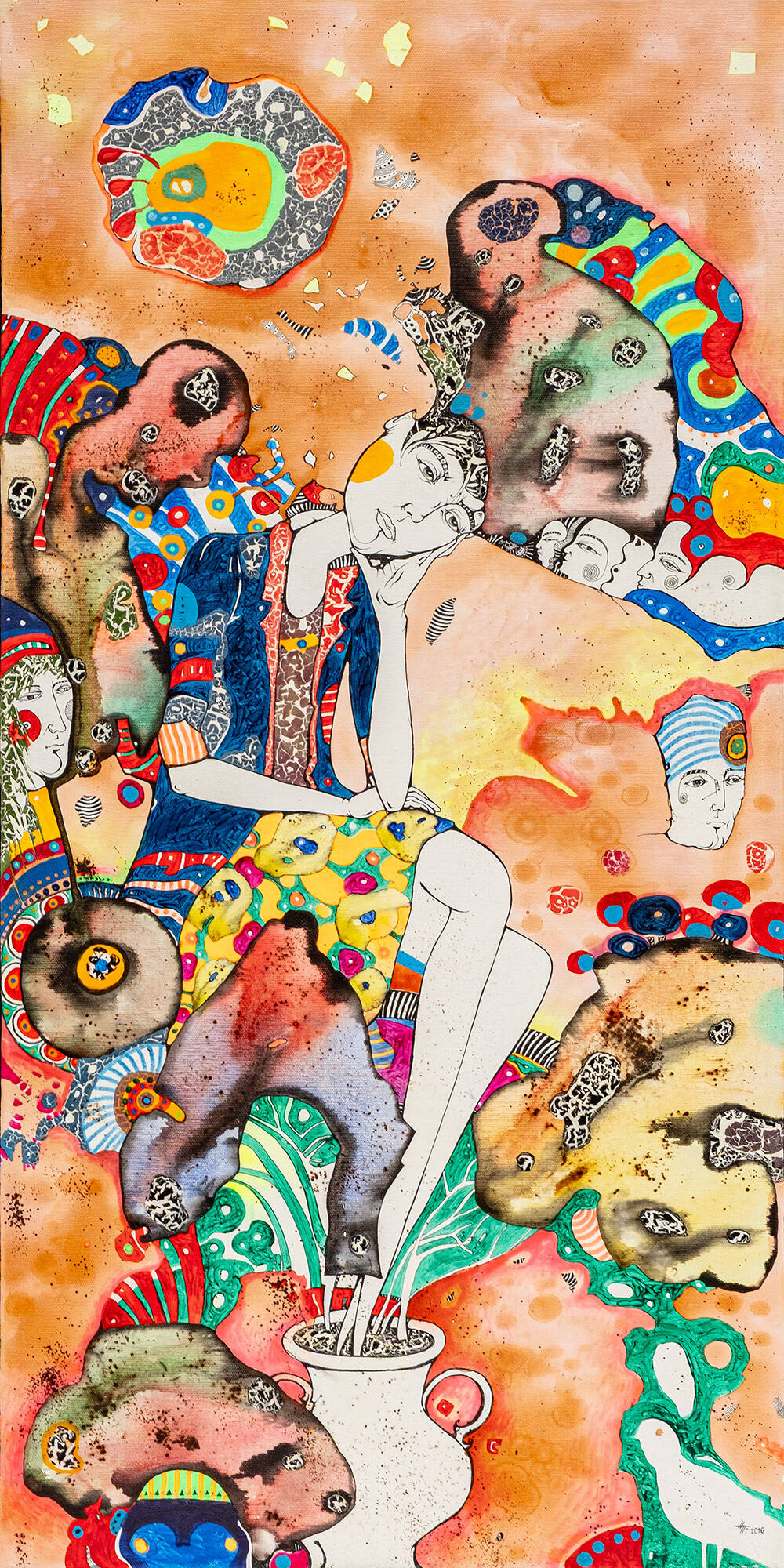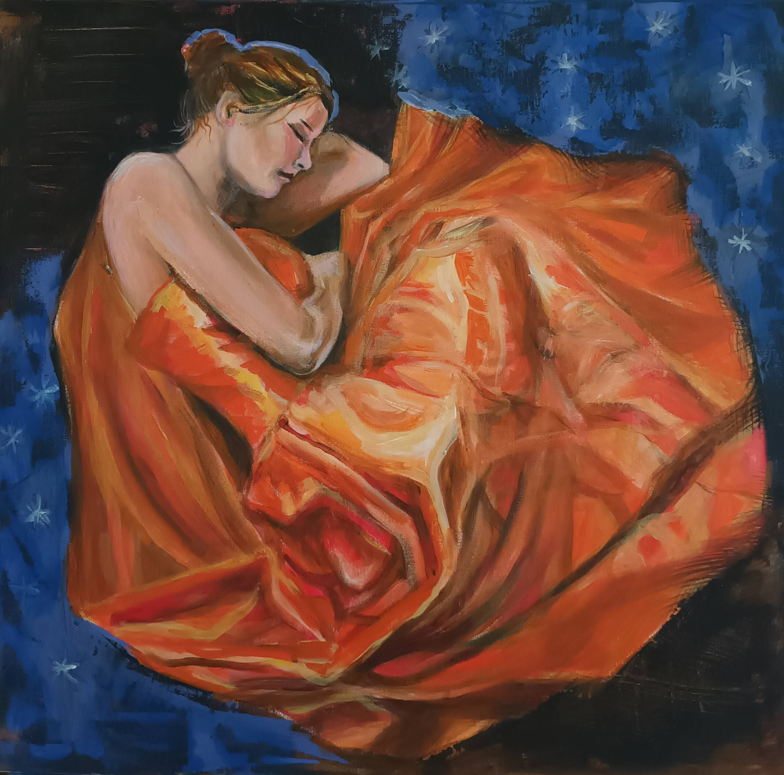 technika własna, szlagmetal, olej, płótno, 90 x 70 cm