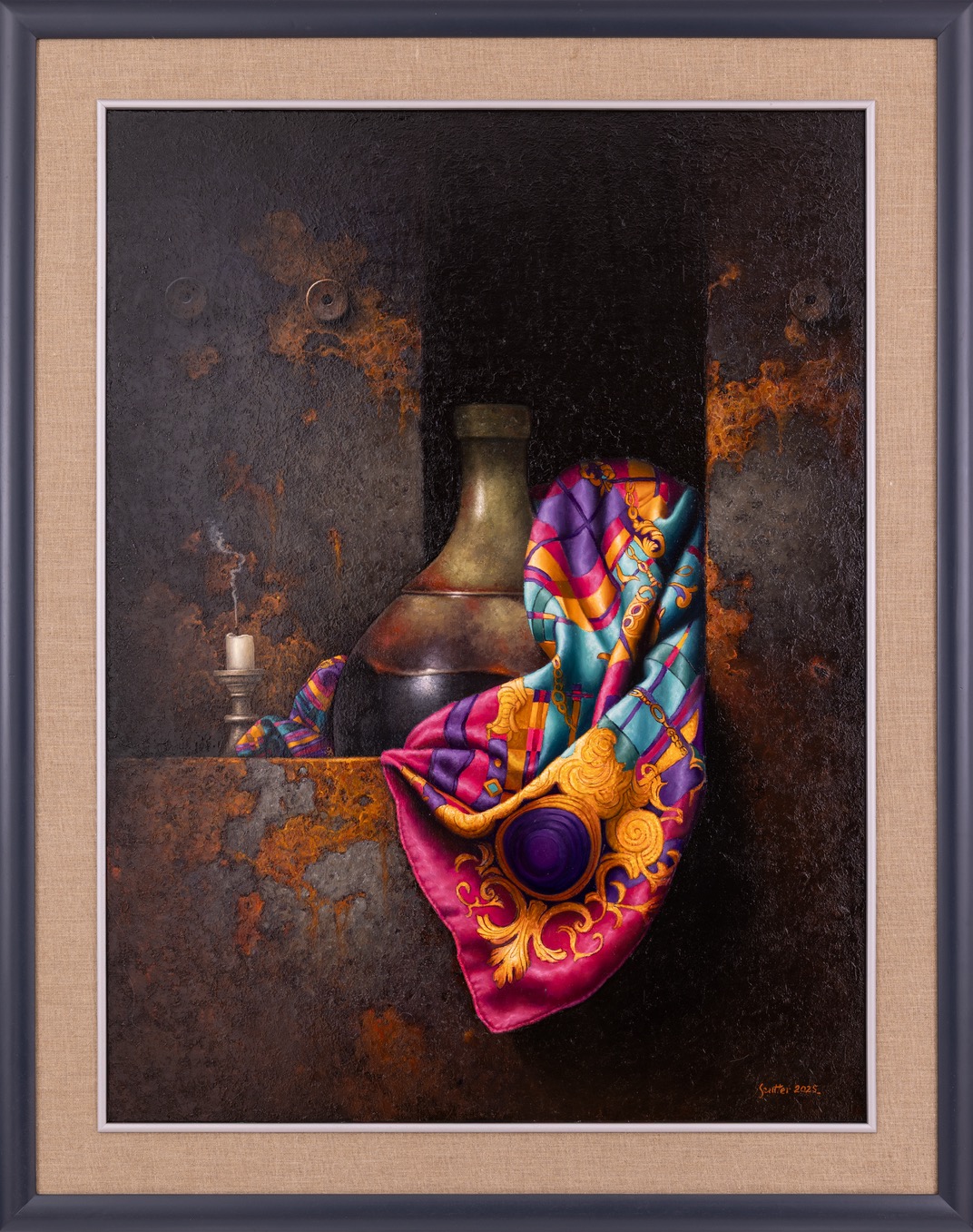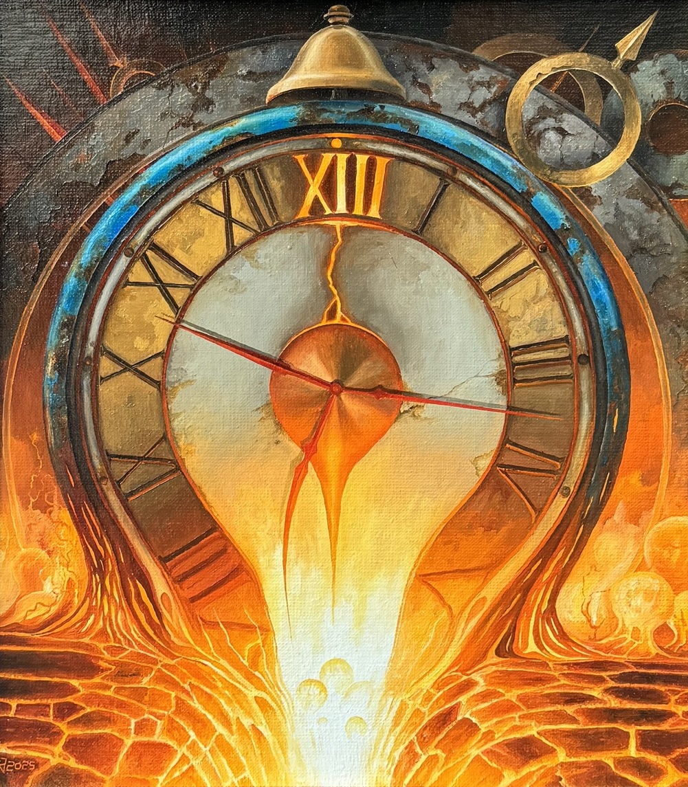 sygnowany l.d. [monogram 'JJ'] oraz opisany na odwrocie: 'JJ | JAROSŁAW | JAŚNIKOWSKI | "CZAS WYTOPIONY W LAWIE" | RZYMÓWKA 24.10.2025 | NR-988' pieczęć artysty