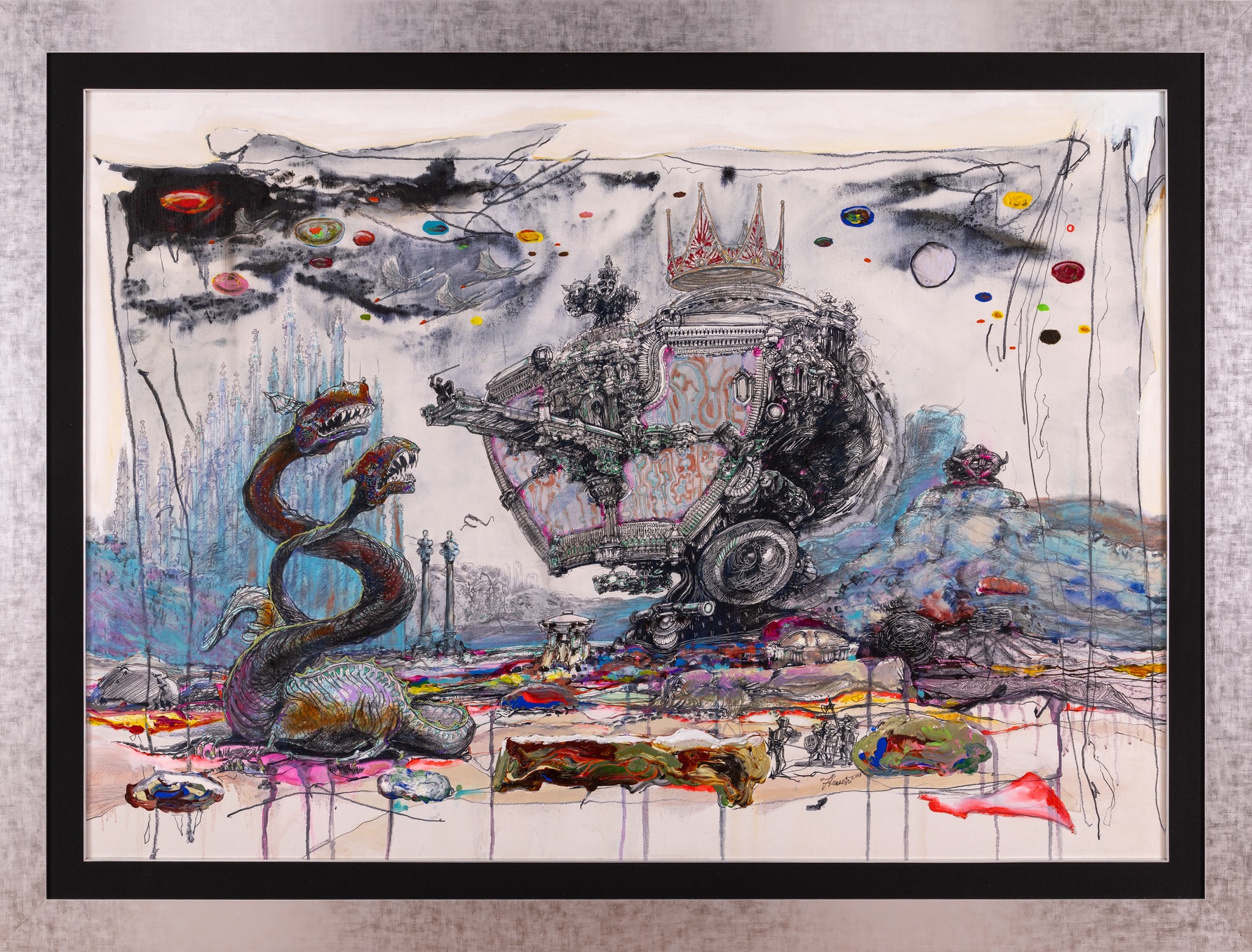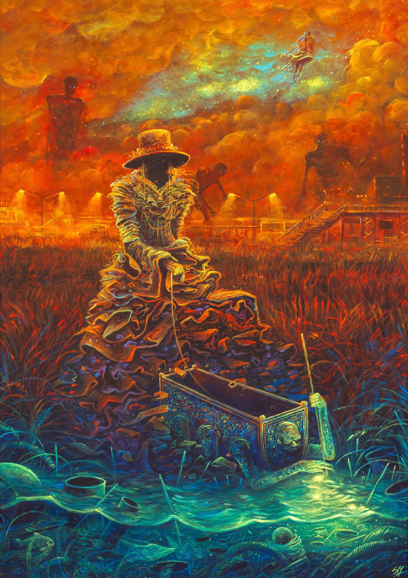 technika mieszana, płótno, 100 x 140 cm (w oprawie 125 x 164 cm),