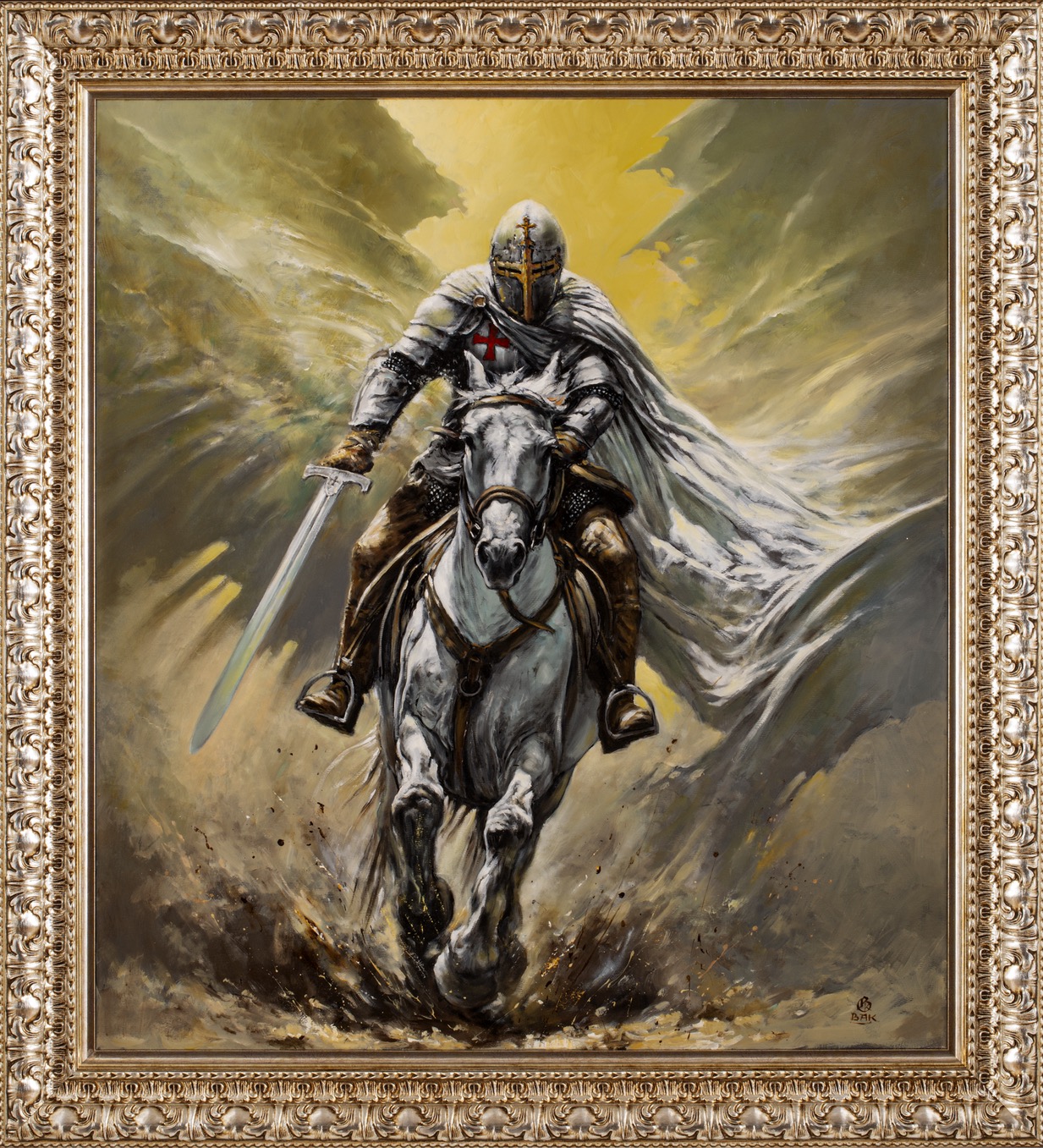 sygnowany p.d.: '[monogram BK] BAK' oraz na odwrocie: '"MILES CRUCESIGNATI 2024 KAROL BĄK'