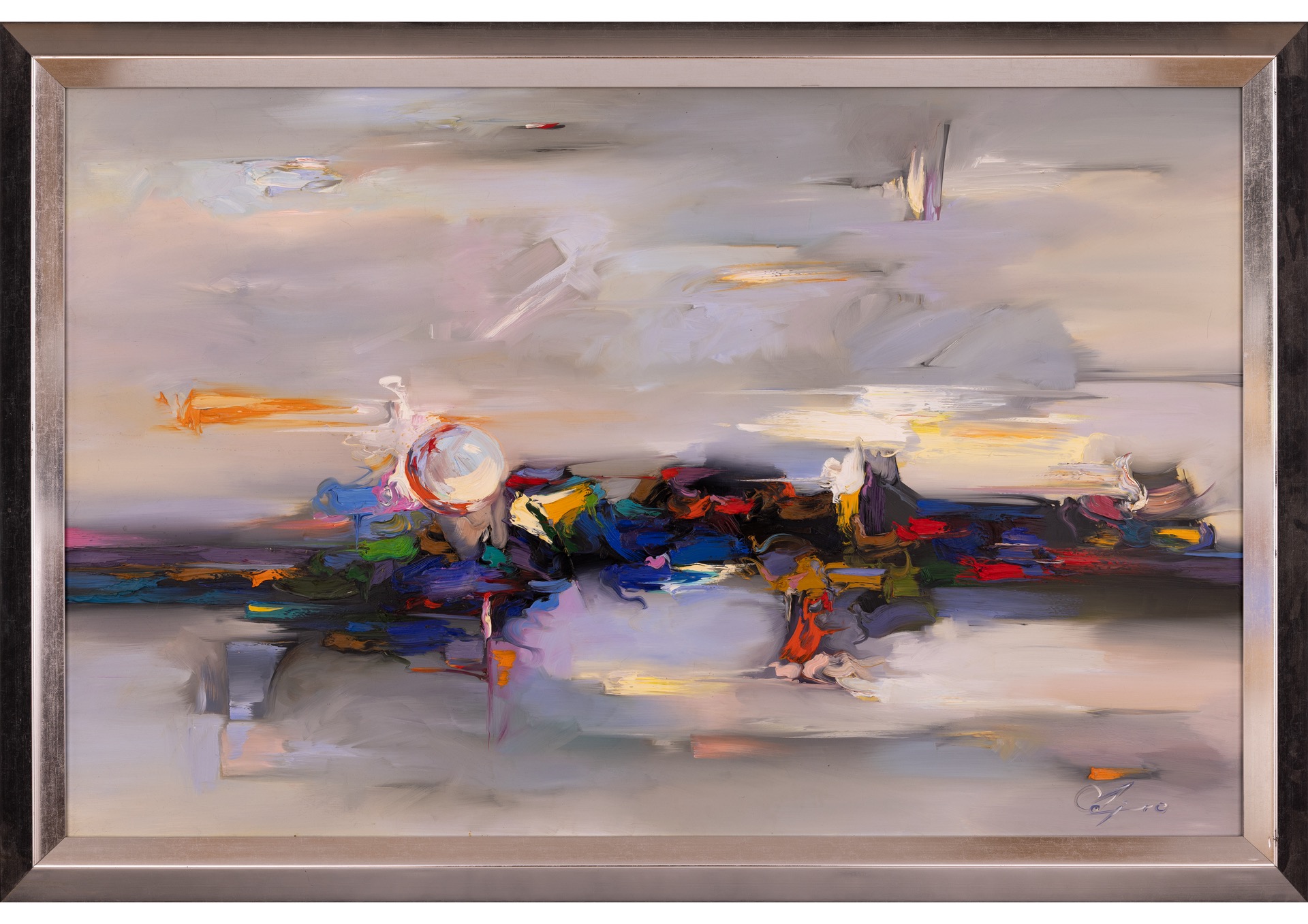 olej, akryl, płóto, 43 x 58,5 cm, (w oprawie 64 x 78 cm),