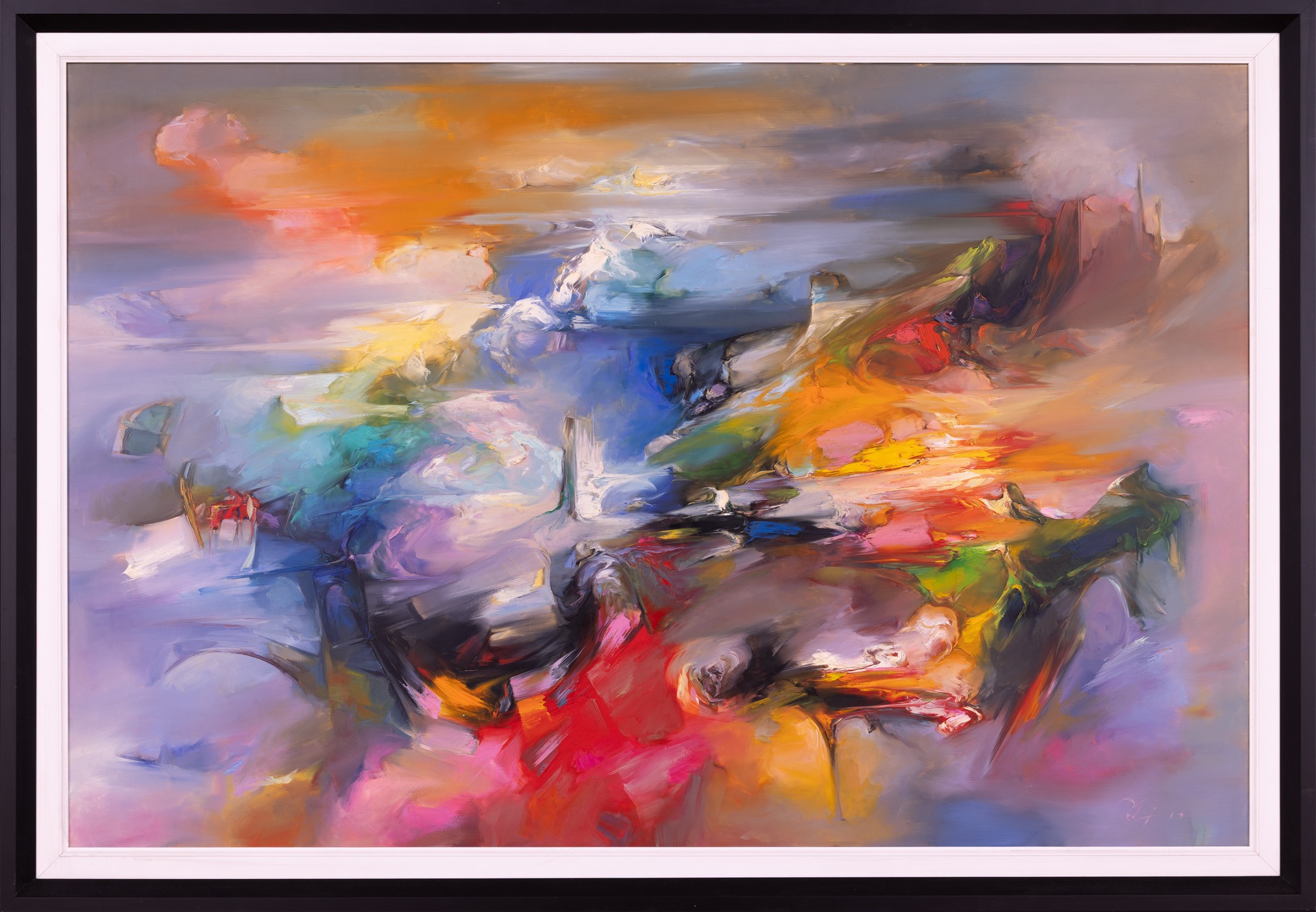 technika mieszana, płótno, 100 x 140 cm (w oprawie 122 x 162 cm),