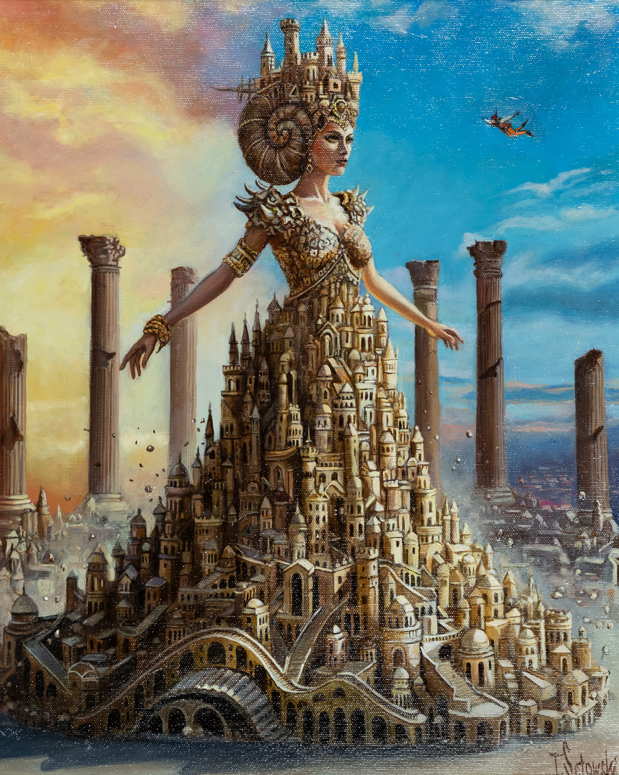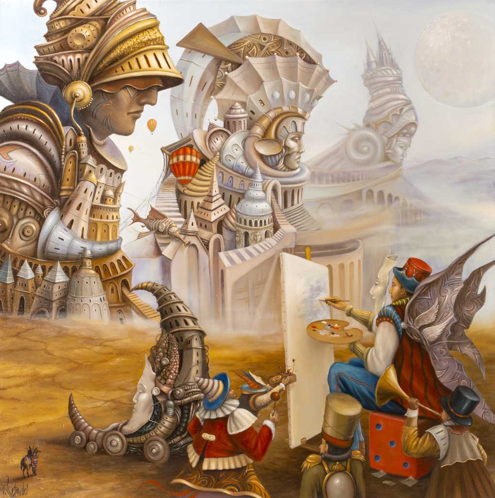 sygnowany p.d.: 'T.Sętowski' oraz opisany na odwrocie: ' "Budowa świątyna Hatszepsut" | olej, pótno 50 cm x 40cm | Tomek Sętowski'