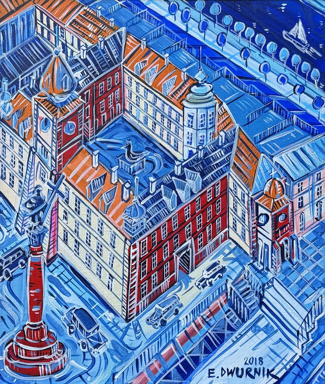 sygnowany l.d.: '2018 | E. DWURNIK' oraz opisany na odwrocie: '2018 | E. DWURNIK | "PLAC ZAMKOWY" | NR: XI-913-7562'