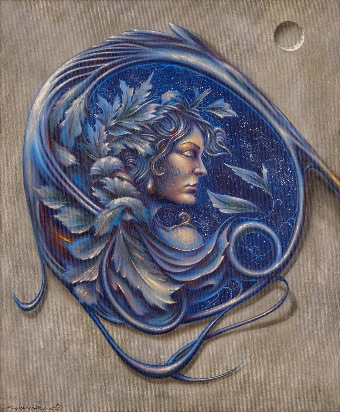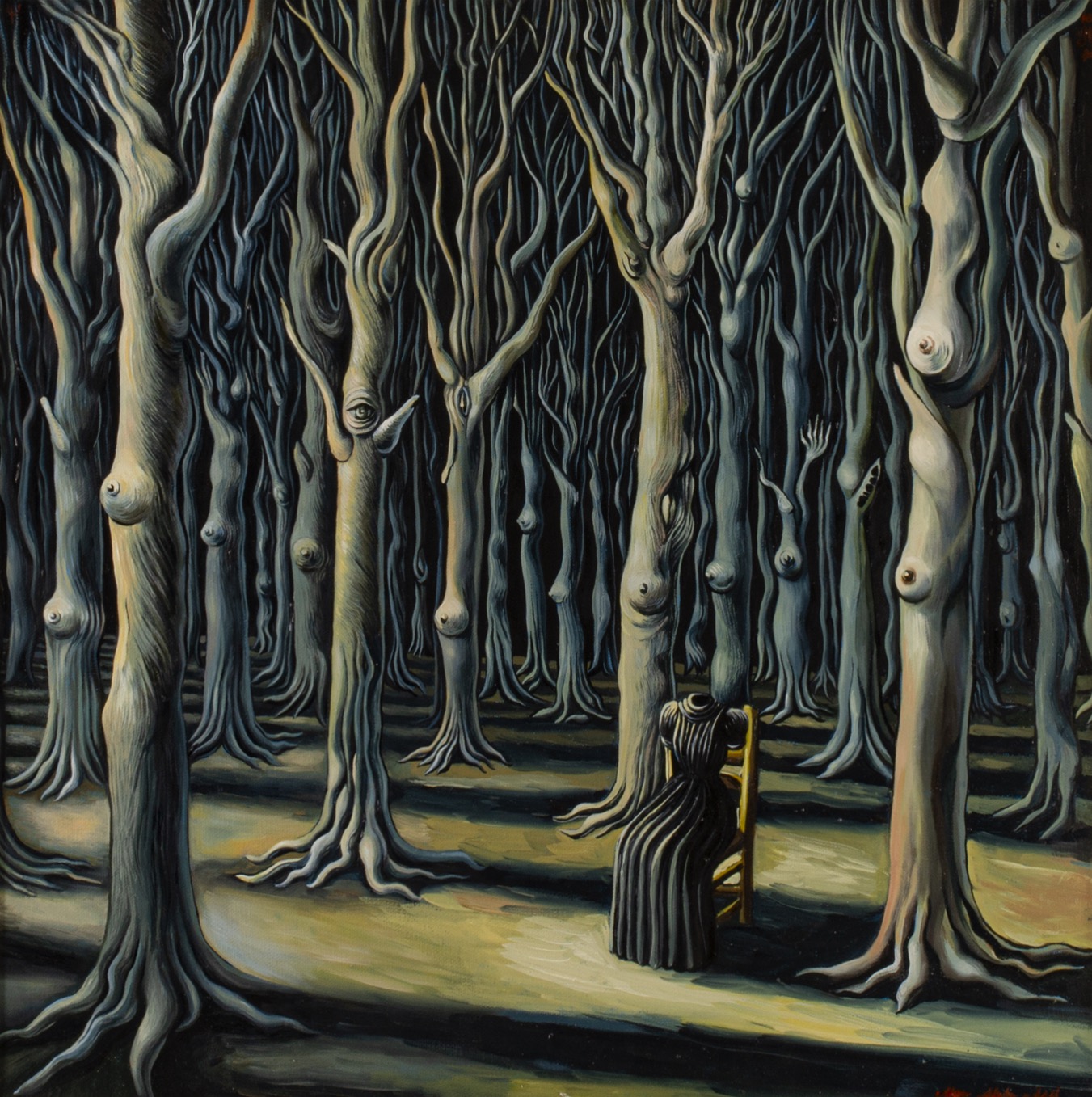 sygnowany l.d.: 'Ślusarsky D.' oraz opisany na odwrocie: '„Noc i Dzień" - „Noc" | DYPTYK | OLEJ 50 x 60 cm | Dariusz | Ślusarsky | 2023'