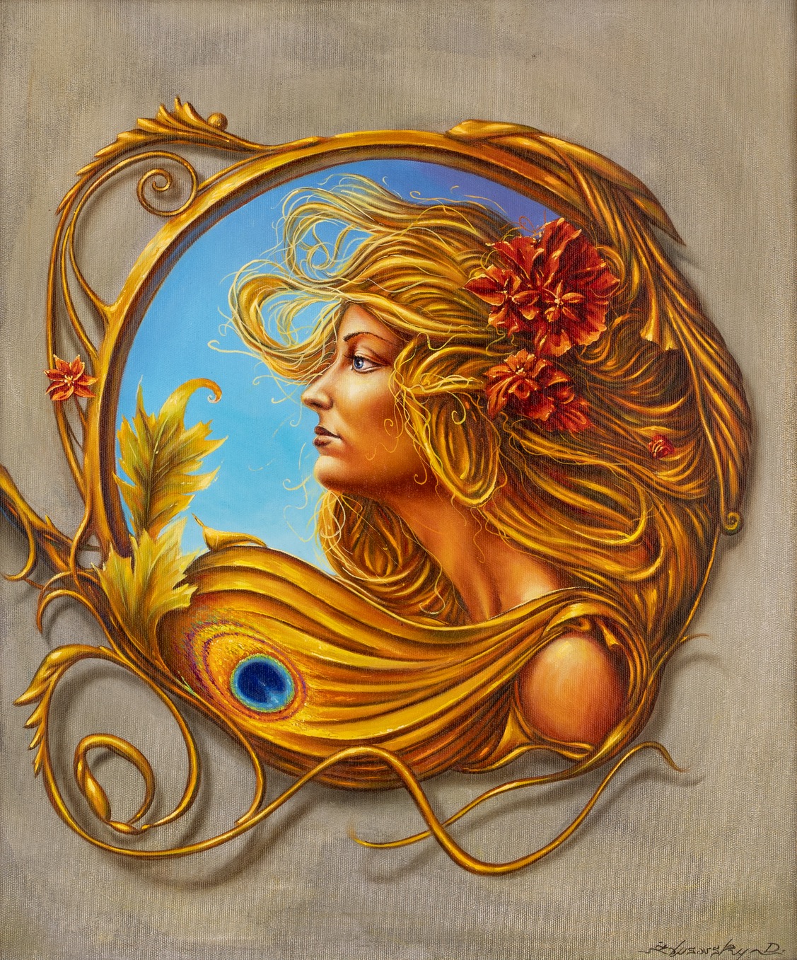 olej, płótno, 100 x 90 cm (w oprawie 120 x 110 cm),