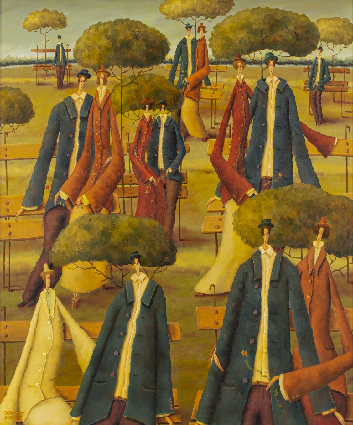 sygnowany l.d.: 'SOKÓŁ 2025 r.' oraz opisany na odwrocie: '"TEJ WIOSNY TEŻ SIĘ | TU SPOTKAMY" | LESZEK SOKÓŁ / 2025 | WYM: 120 x 100'