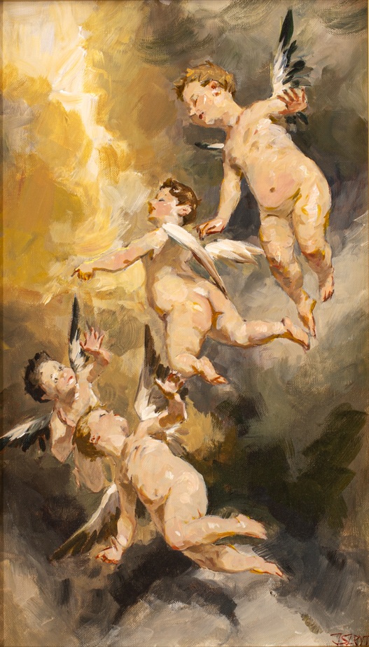 sygnowany p.d.: 'JSZPYT' oraz opisany na odwrocie: 'Janusz Szpyt | "ANIOŁKI" | 2023 | 60 x 35'