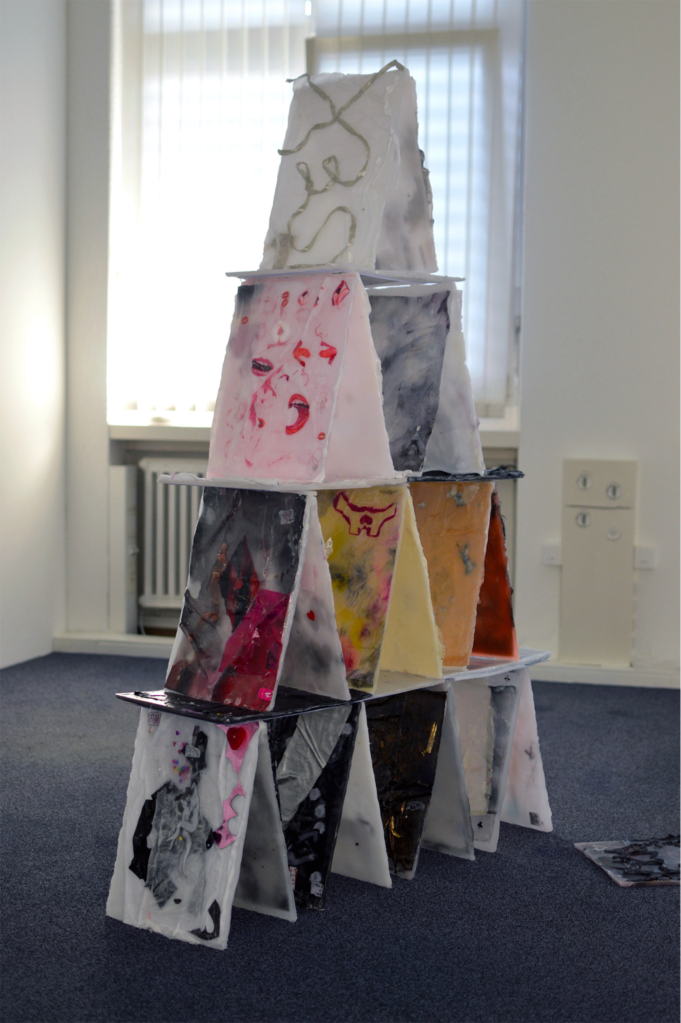 wosk, plexiglass, tkanina, 26 kart (28 x 36 x 1.2 cm każda)