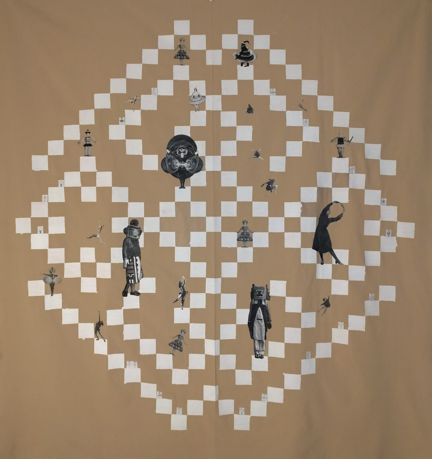 akryl, kolaż/len, 140 x 140 cm