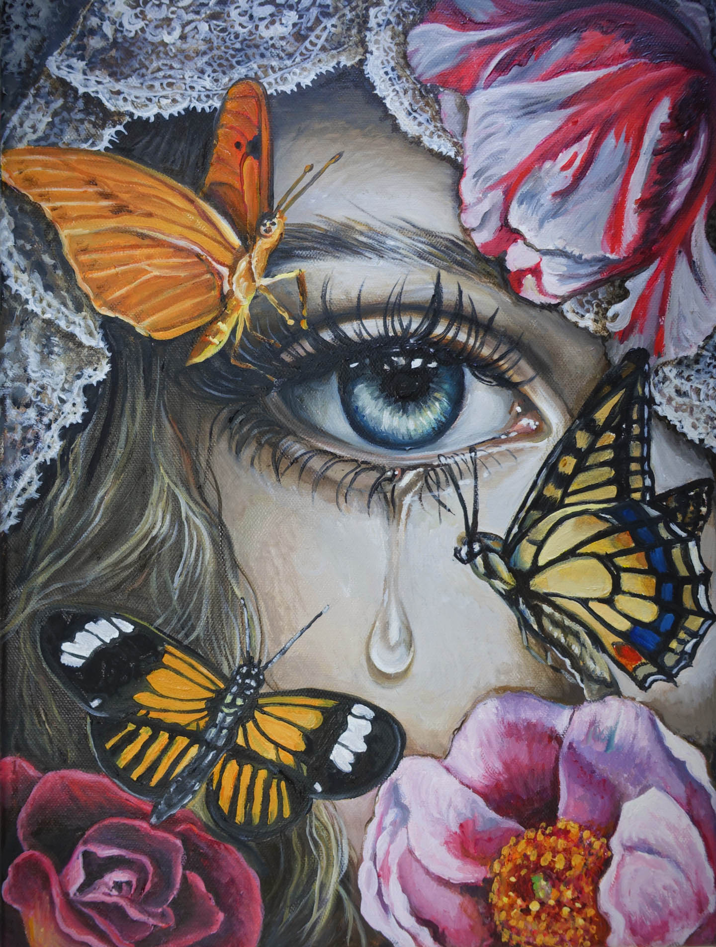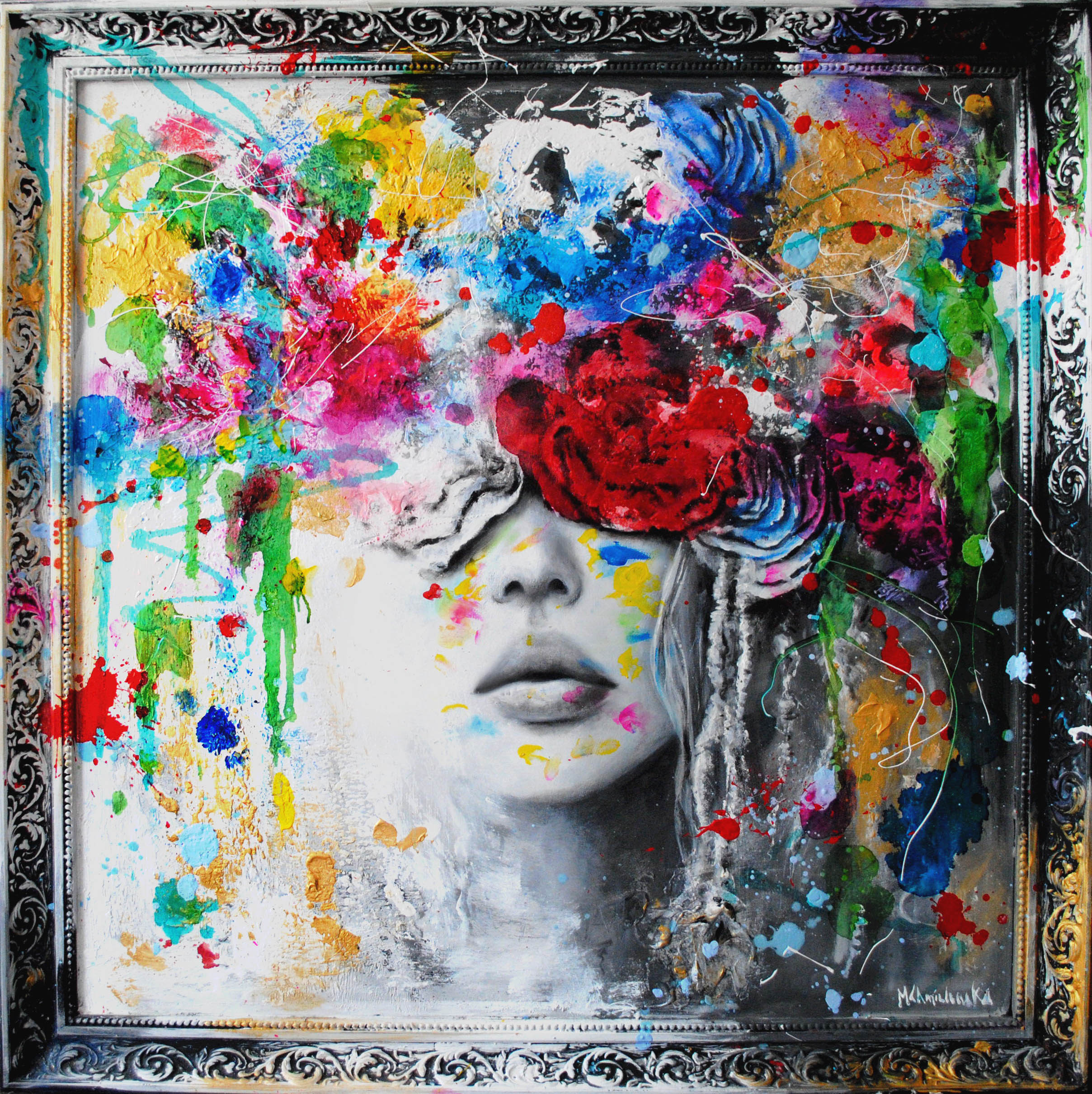 technika mieszana (farby akrylowe, markery akrylowe), 70 x 50 cm, w oprawie american box: 74 x 54 cm,