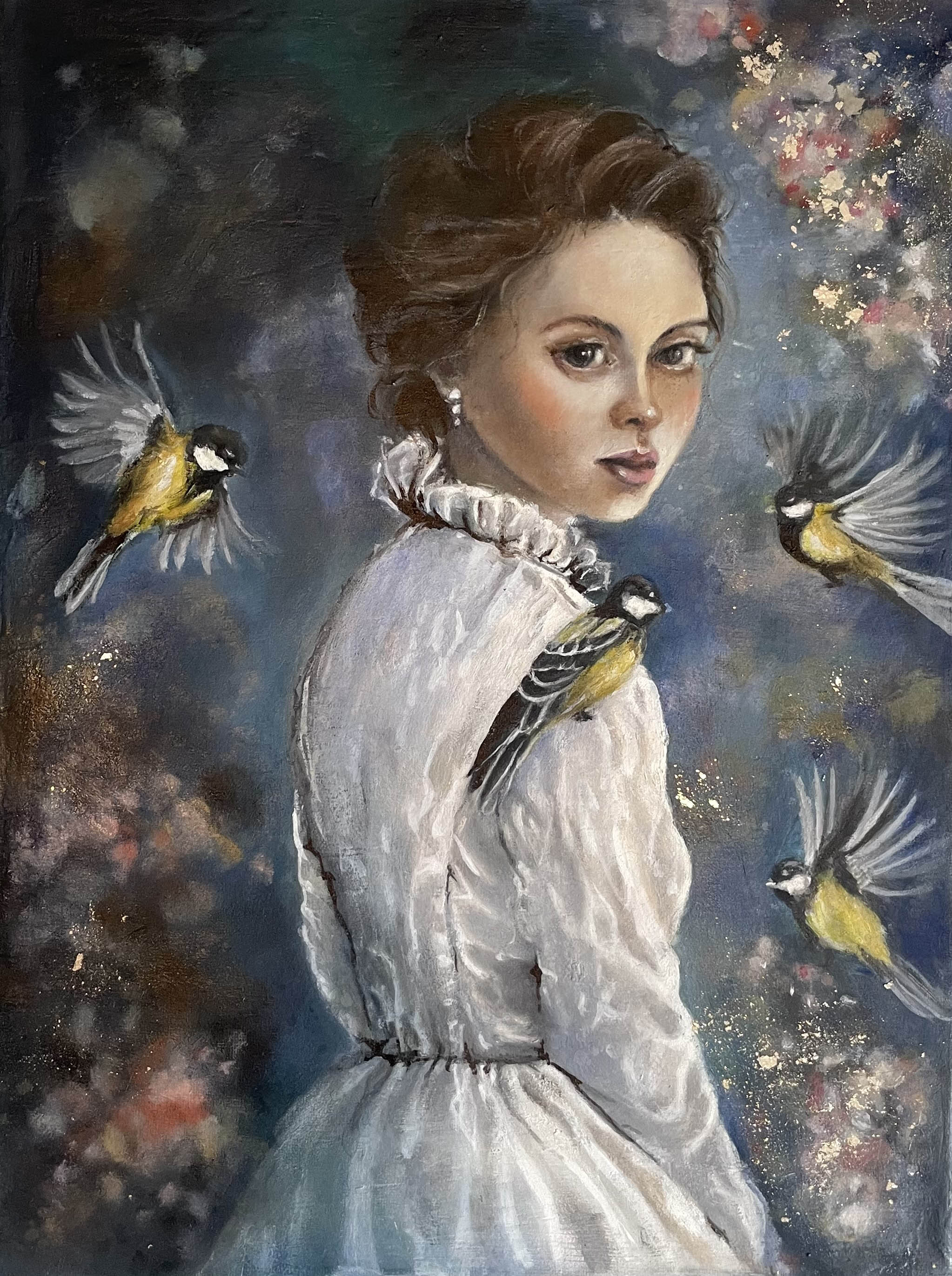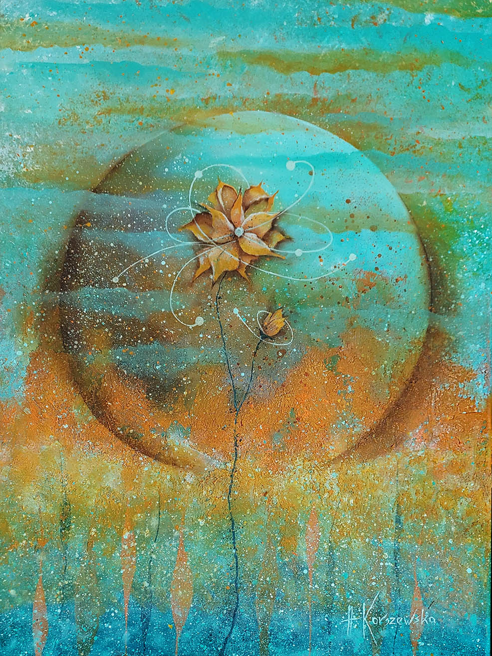 technika mieszana (olej, akryl, struktura, szlagmetal), płótno, 40 x 30 cm,