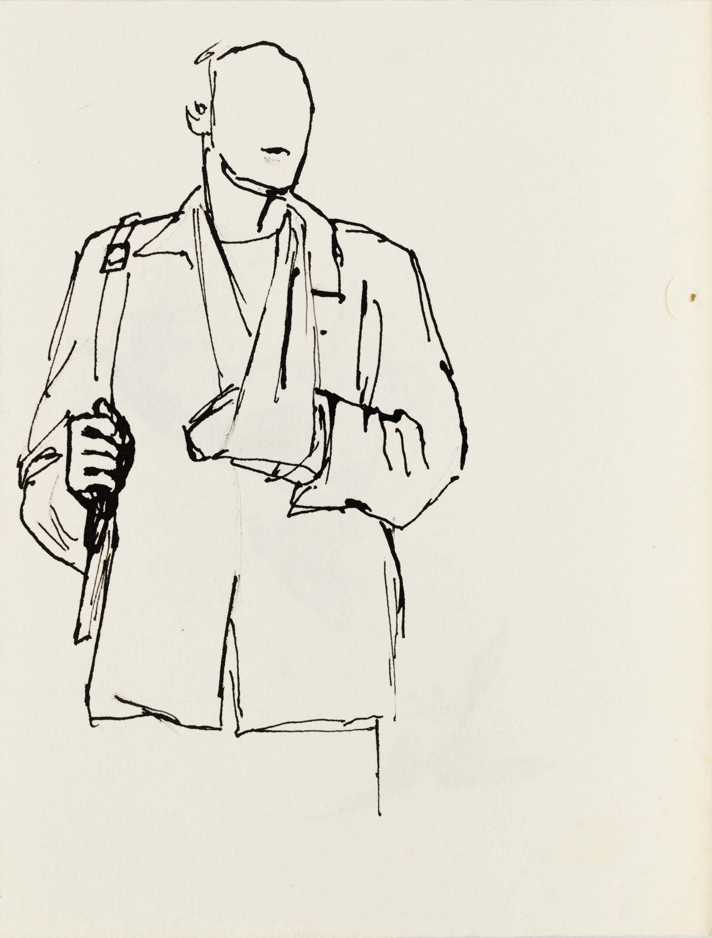 Na odwrocie szkic rannego w rękę żołnierza.