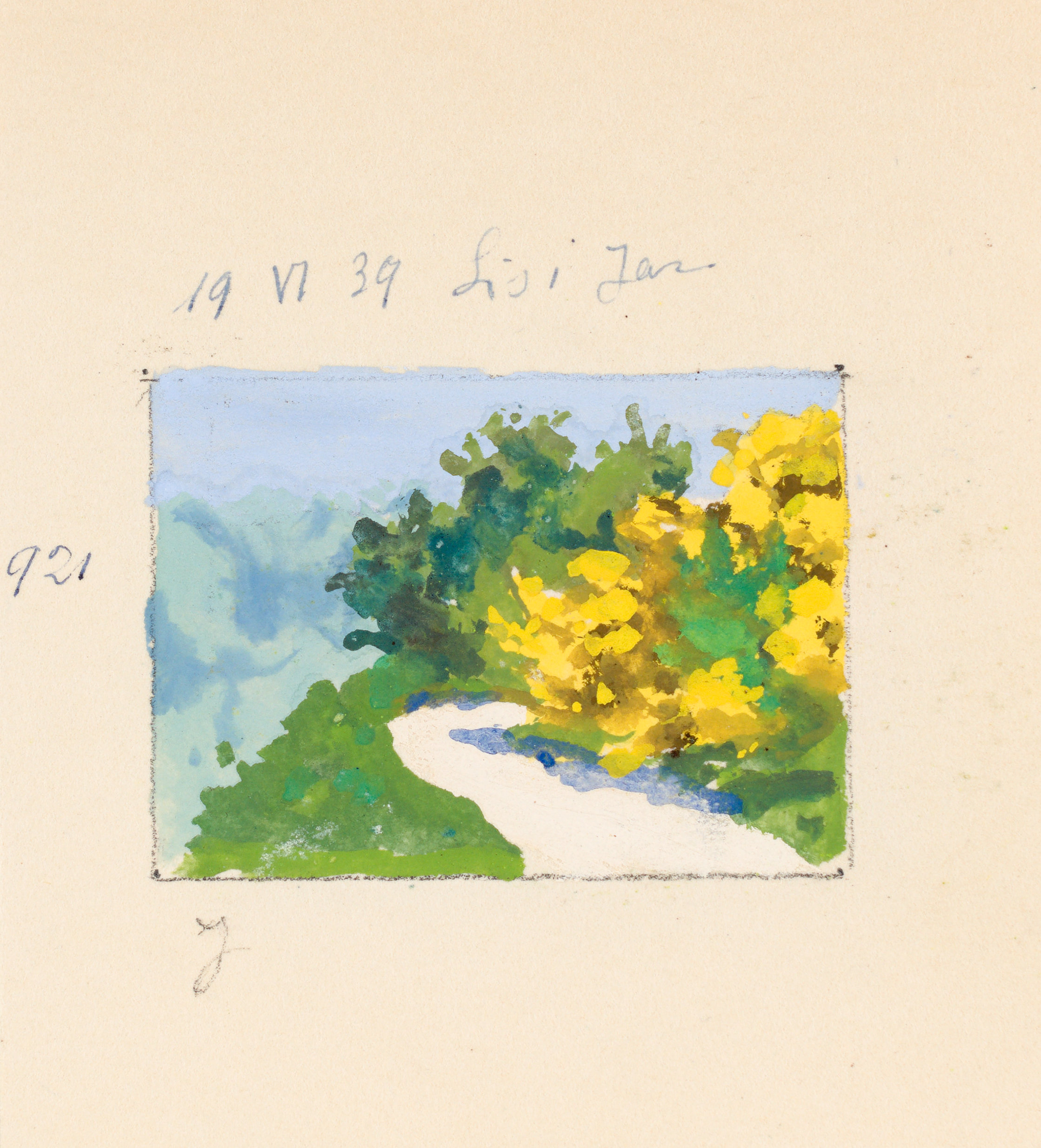 Na odwrocie rysunek: Widok z Lisiego Jaru, 1939 (4,8 x 6,7 cm) również...