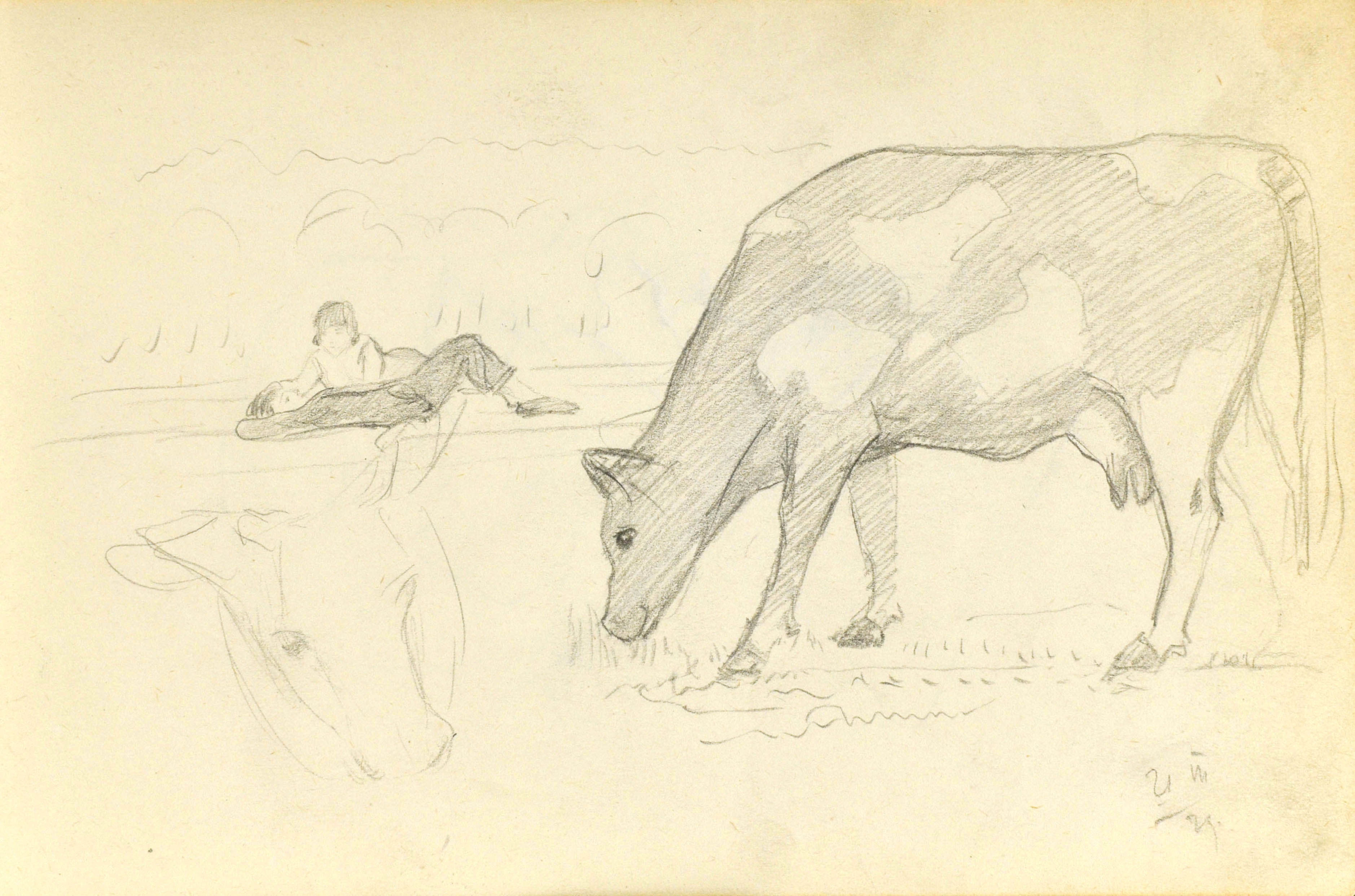 Na odwrocie drugi szkic byka z tyłu.