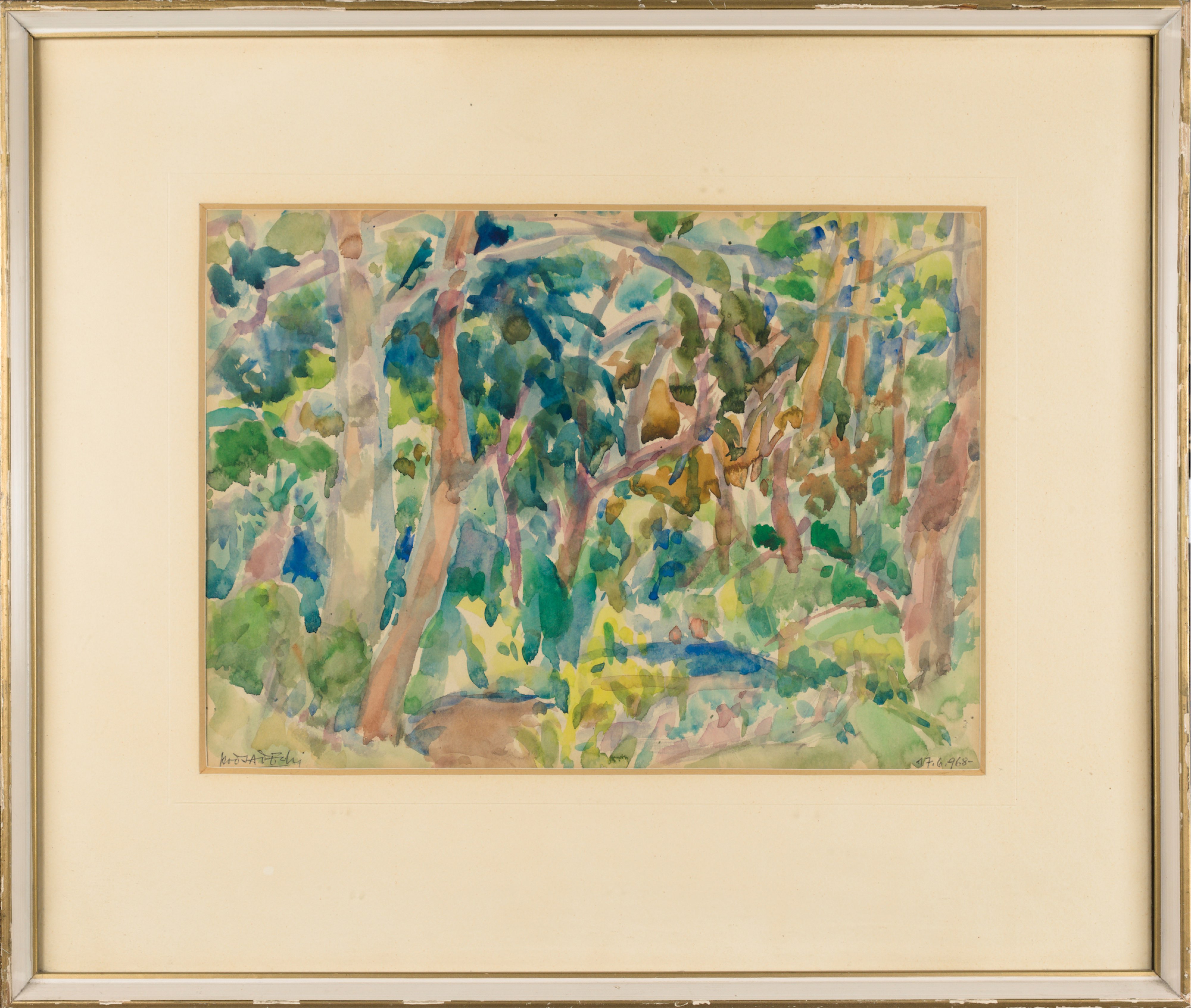 Na odwrocie szkic pejzażu nadwodnego (akwarelą).