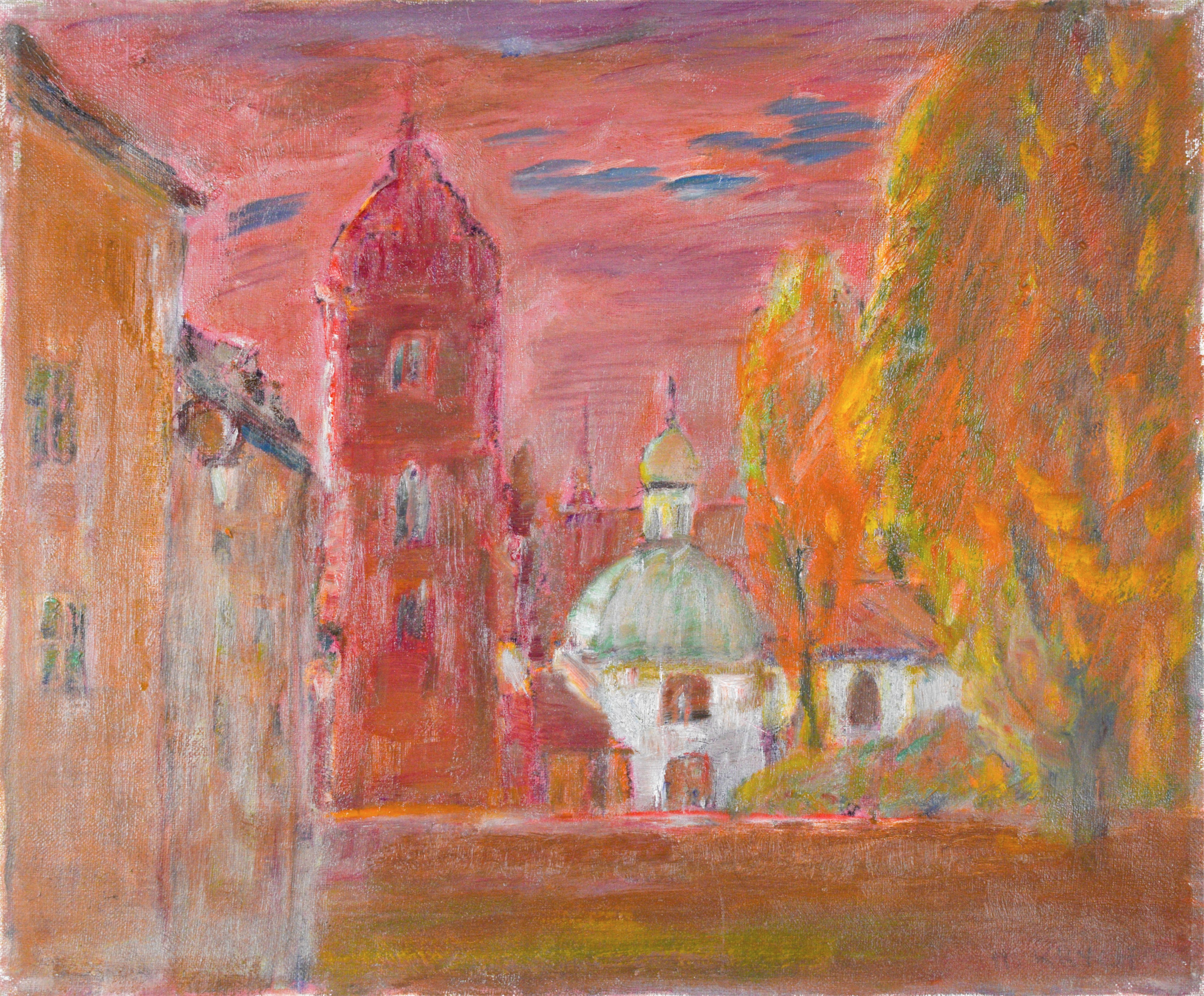 Na odwrocie na płótnie napis: H. KRYCH. / „KOŚCIÓŁ MARII NA NOWYM MIEŚCIE” / WYMIAR 46 x 38 cm / OLEJ; poniżej na krośnie malarskim nr 112; również na krośnie malarskim...