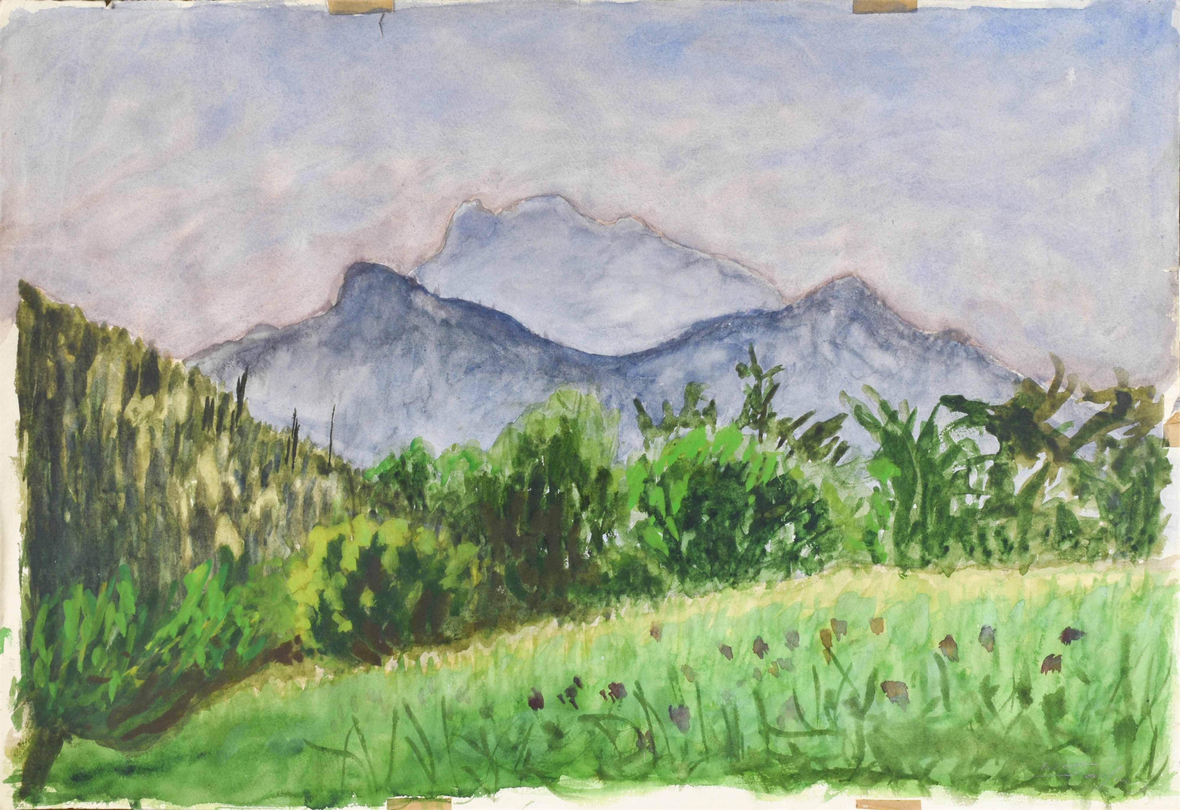 akwarela, papier naklejony na tekturę; 40,5 x 29,5 cm;