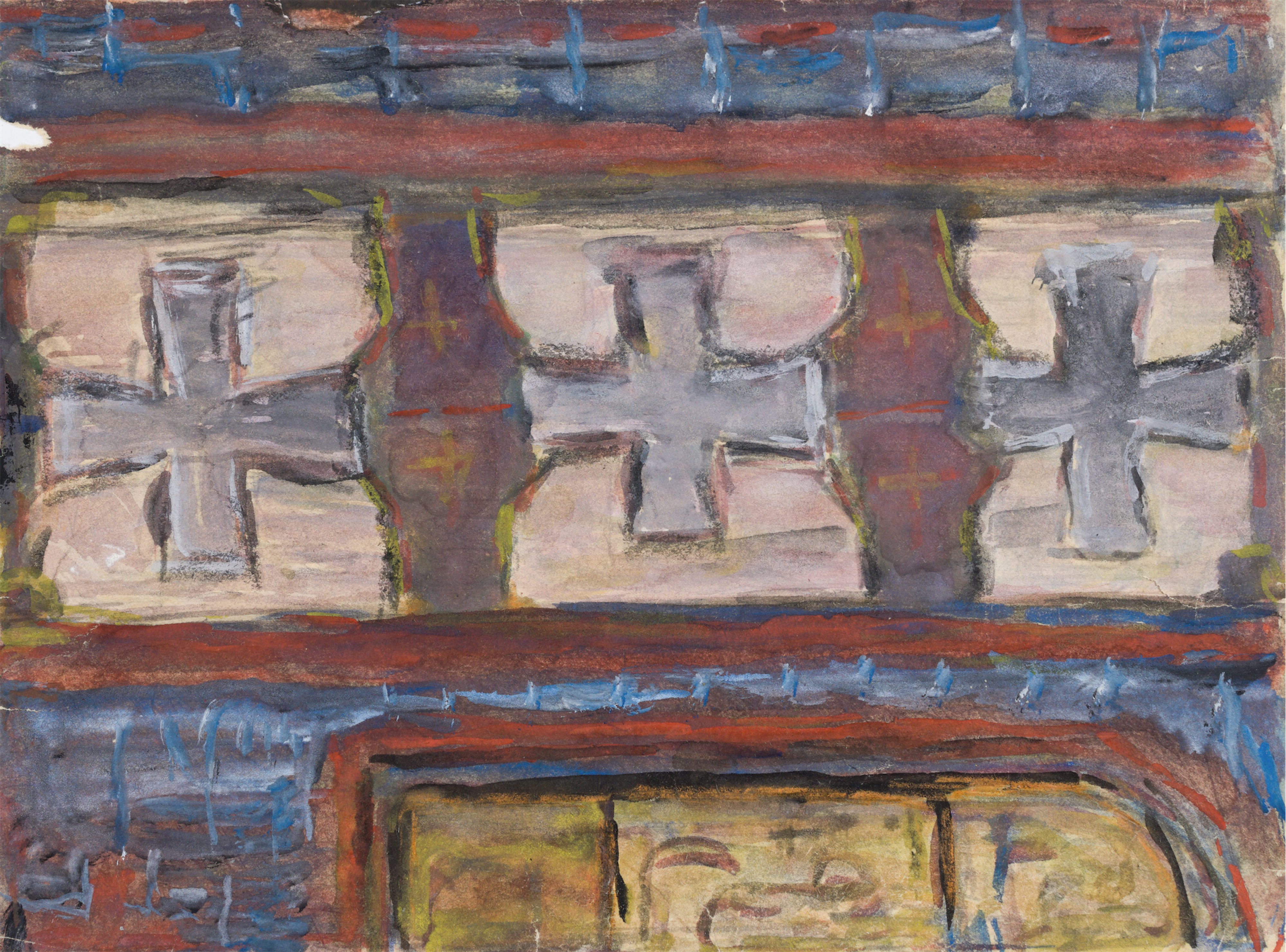 pastel, papier; 20,5 x 14,5 cm (wymiar kompozycji), 20,5 x 28,9 cm (wymiar arkusza);