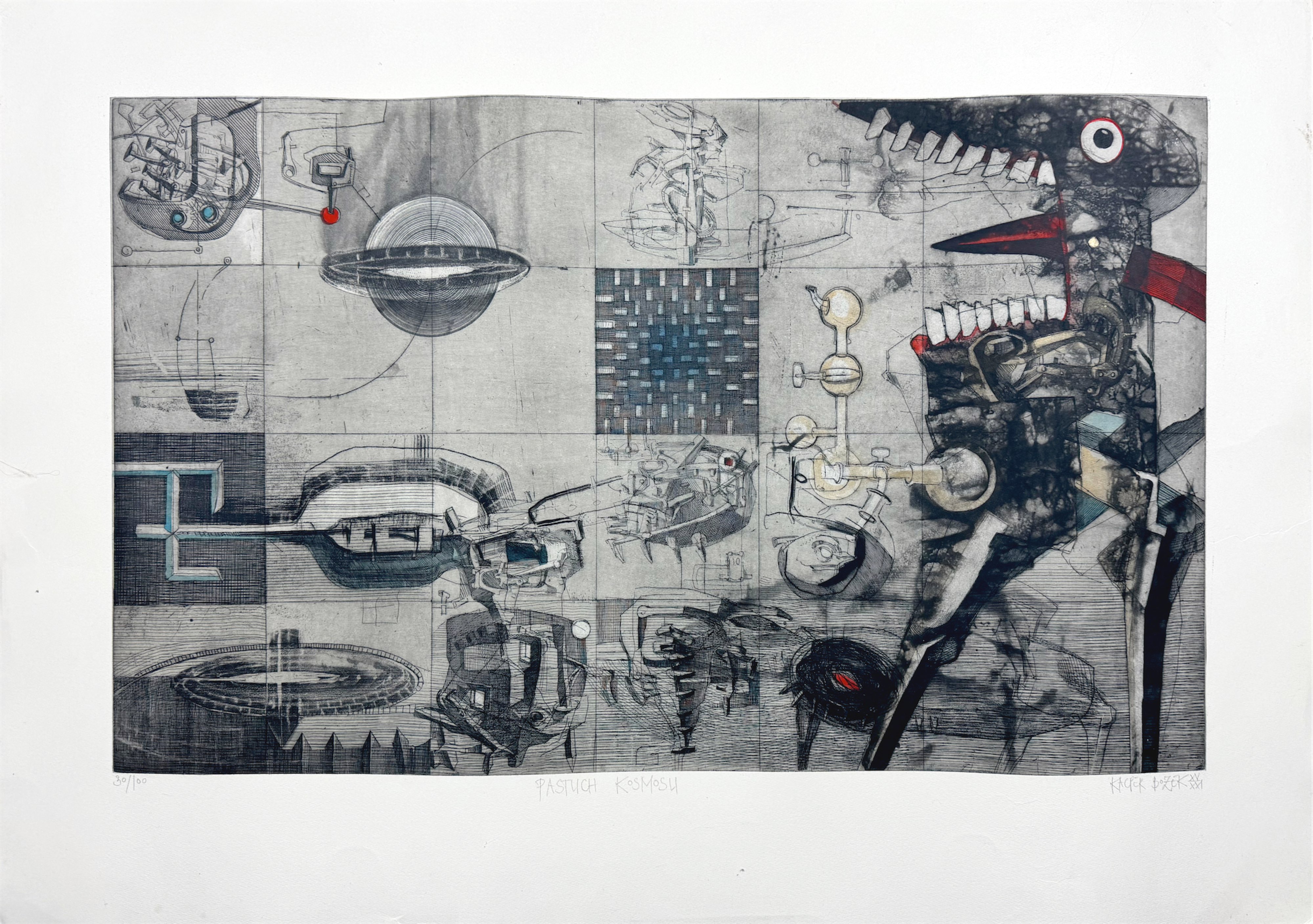 sygn. p. d.: KACPER BOŻEK XV / XXI (ołówkiem), opisane śr. d.: PASTUCH KOSMOSU (ołówkiem) oraz numerowane l. d.: 30/100...