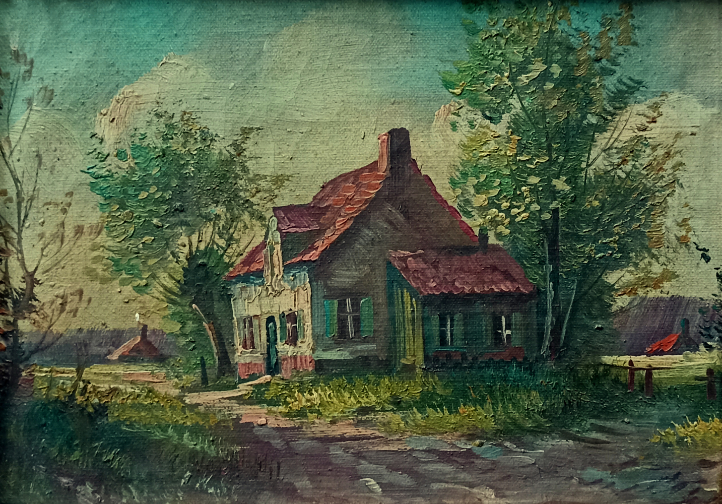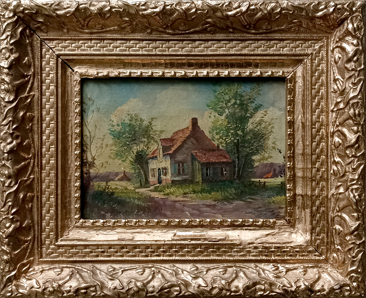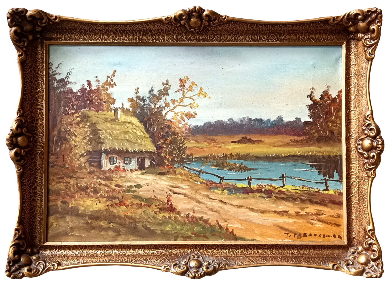 Pejzaż z chatą nad stawem