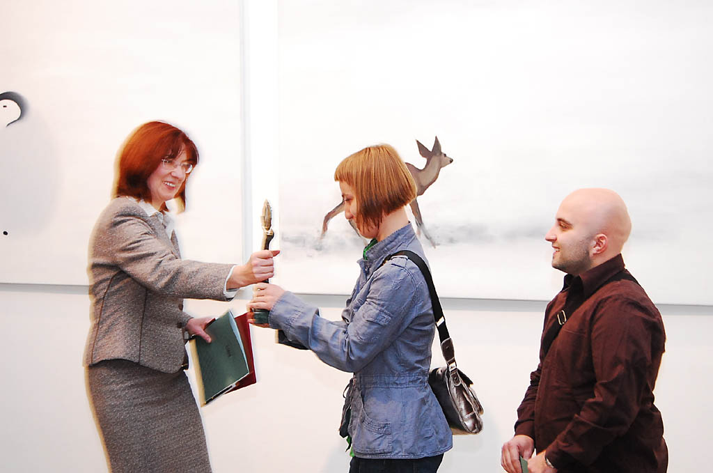 Z kolei Stefan Hanćkowiak z Zielonej Góry (III nagroda) w swojej twórczości operuje wymyślonymi postaciami Bombla i Glizdy. Wesołe, jaskrawe kolory, wielkie oczy i symbolicznie pojawiające się zwierzęta, mają na celu wprowadzenie odbiorcy w bajkowy świat wewnętrznego dziecka, które jest w każdym z nas. A wszystko po to, by zmierzyć się z problematyką natury świata, twardymi zasadami egzystencji, czy poszukiwaniem efemerycznego szczęścia. Agatę Biskup z Krakowa, zeszłoroczną absolwentkę krakowskiej ASP nagrodzono za refleksyjne obrazy odważnie sięgające do banału, poruszające problem przenikania sztuki do codzienności i odwrotnie – II nagroda oraz wyróżnienie redakcji „Exit” za prace pt. „I co ja teraz zrobię?!”, „Pingwin”.