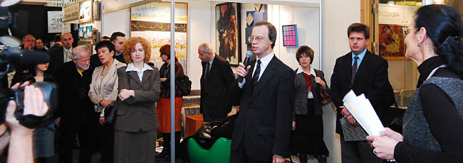To wszystko uzupełniał ramami i propozycjami doradztwa Nielsen, znany producent opraw, który promował wzory z serii Galeria, specjalnie dostosowane do wysokich wymogów prezentacji kolekcjonerskiej. Trudno się więc dziwić, że niełatwe zadanie miała redakcja organizującego targi "Art & Business", która od tego roku postanowiła nagradzać najciekawsze stoisko targowe, premiując wystawcę nieodpłatną reklamą na swoich łamach. Wybór poczyniła iście salomonowy, nagradzając stoisko Wydawnictwa BOSZ, wabiące zwiedzających pięknymi albumami o sztuce. Informację o wyróżnieniu podano do wiadomości w trakcie tradycyjnego bankietu antykwariuszy w restauracji Honaratka.