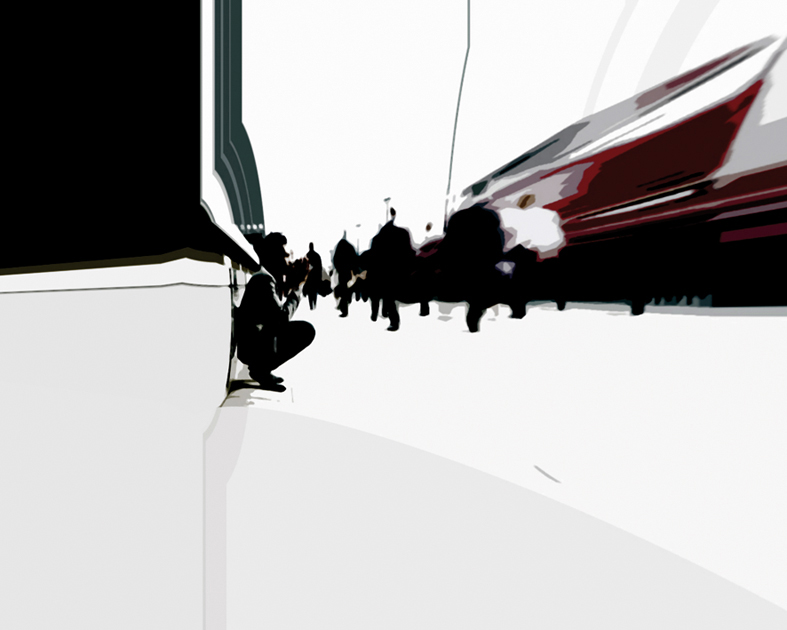 Postaci z cyklu Townee zastygają stojąc lub kucając, a reszta świata kręci się z prawie szybkością światła. Czarne postaci, bez twarzy reprezentują everymana, każdego z nas. Możemy się utożsamić z postaciami, które żyją w wielkich aglomeracjach miejskich.